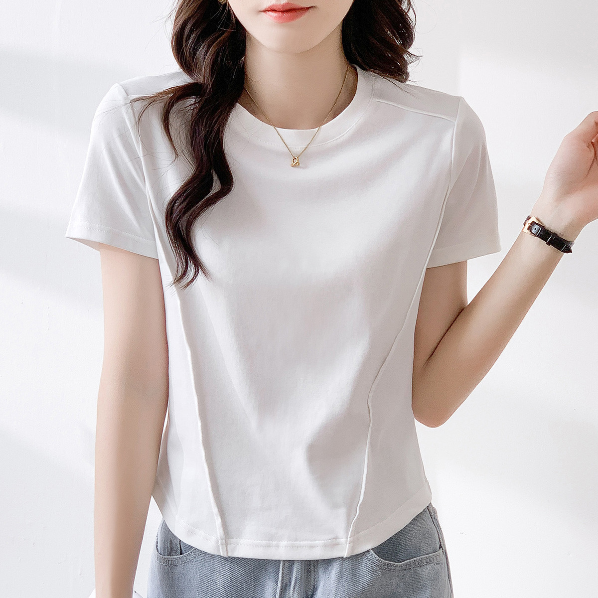 【夏季】短款圆领纯色休闲T恤简约女套头短袖上衣 843864