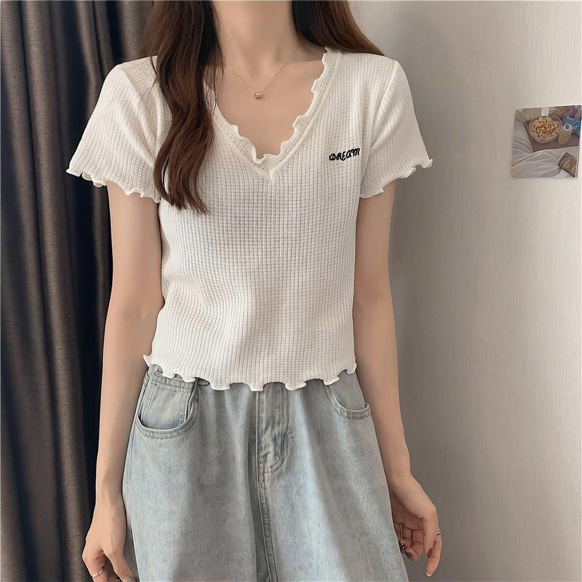 短袖针织衫t恤女设计感短袖t恤女短款短袖针织衫上衣 032963