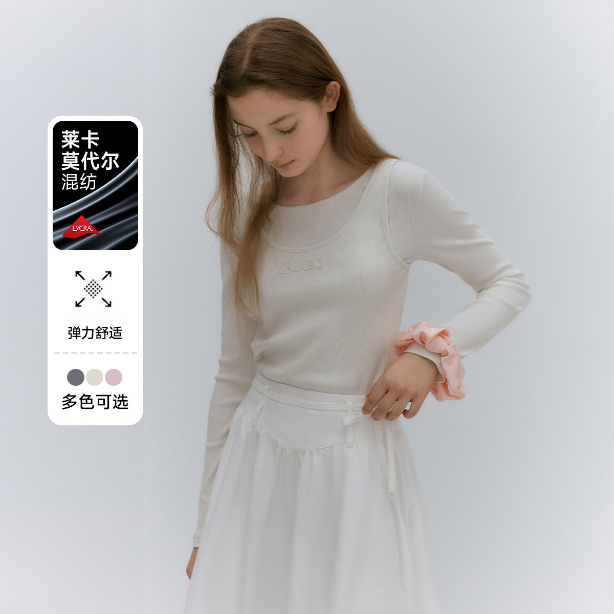 长袖T恤【莱卡】小熊莫代尔混纺假两件长袖T恤 341505
