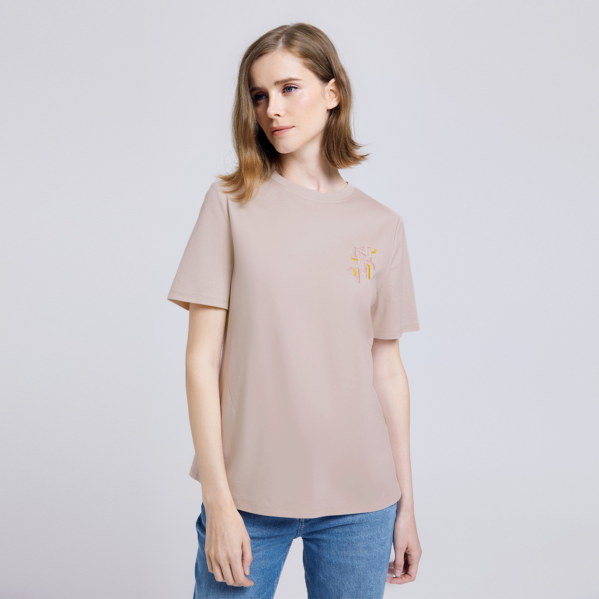 【UPF40+】短袖T恤女夏季防晒凉感刺绣圆领T恤上衣女 131201
