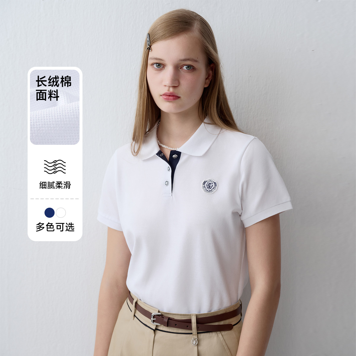 【长绒棉】小熊女简约休闲通勤学院风短袖POLO衫T恤 152961