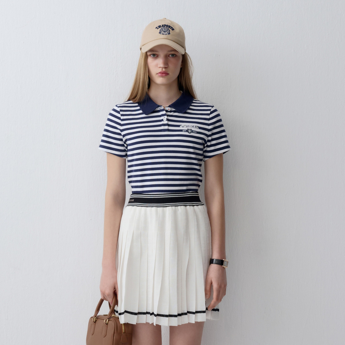 小熊女装休闲宽松时髦条纹Polo衫短款T恤 626177