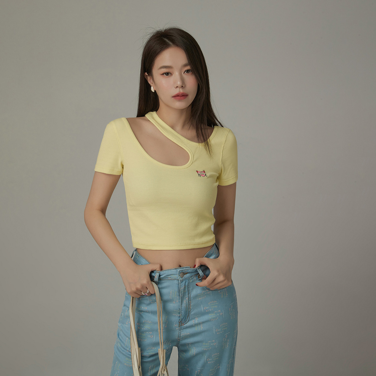 不对称修身T恤女春夏辣妹个性显瘦设计感短款上衣 418707