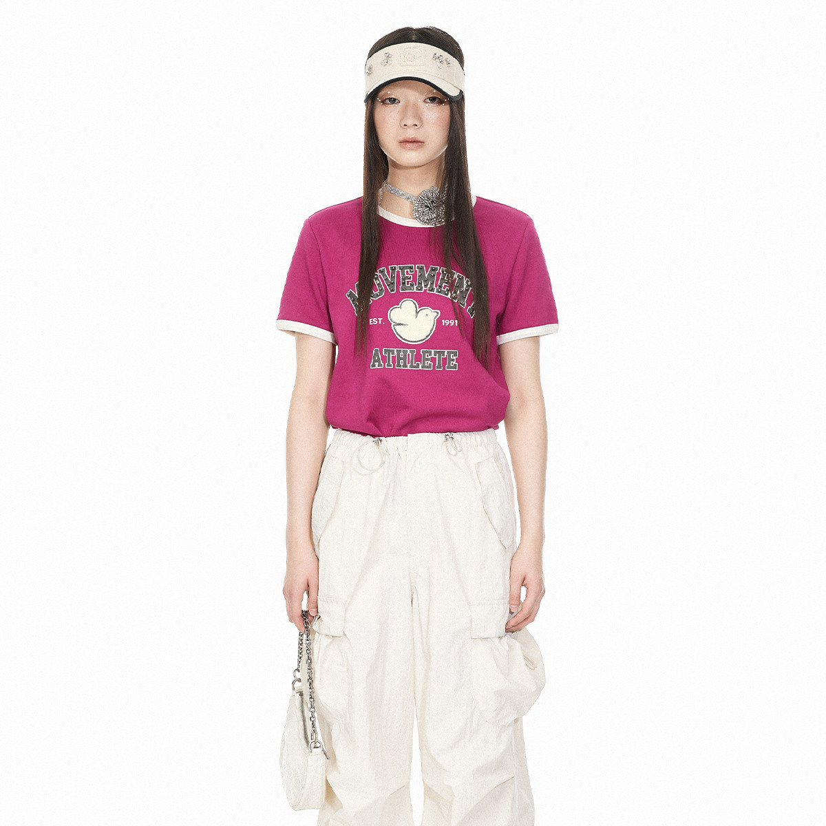 短袖T恤女夏季学院风青春活力撞色拼接刺绣圆领T恤打底衫女 854721