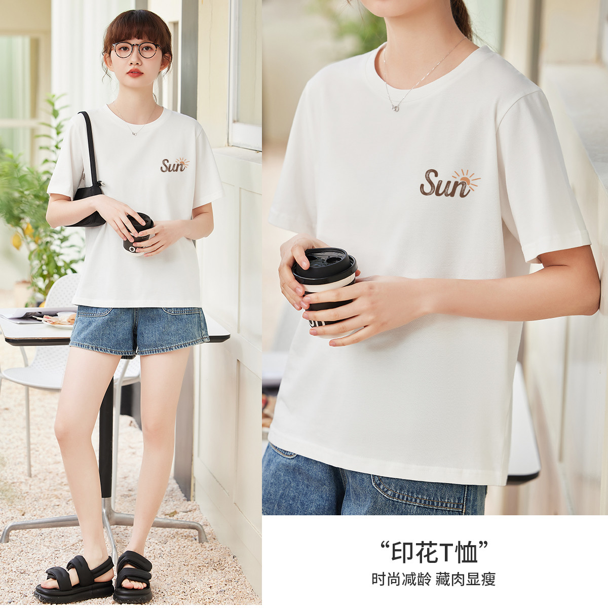 米子旗青春减龄字母印花T恤夏季女简约舒适显瘦短袖上衣 145242