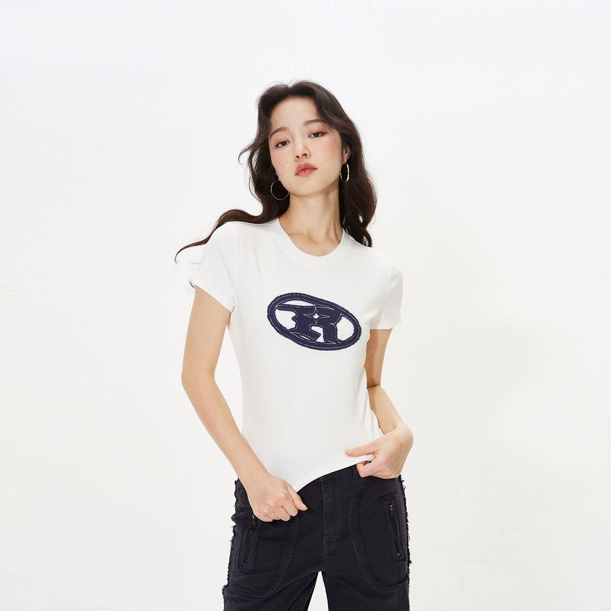 【时尚字母】夏季修身圆领短款短袖正肩T恤女 580250