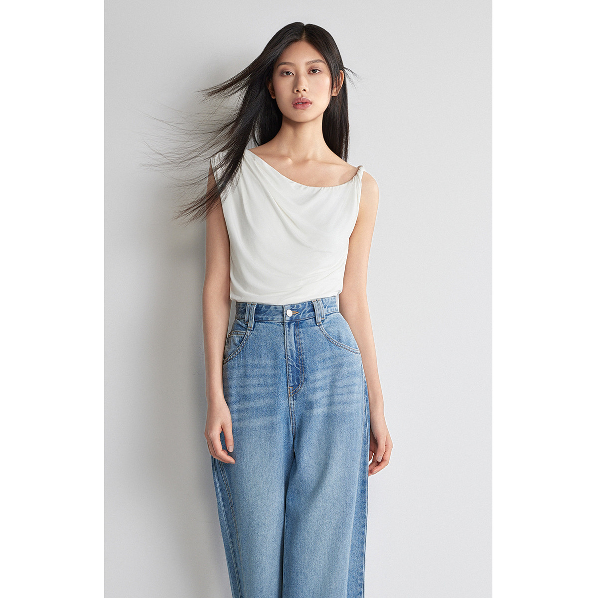 夏装 不对称无袖t恤女上衣透气别致设计感 637519