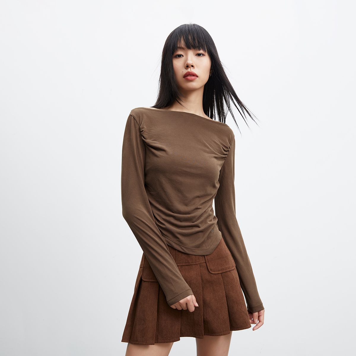 【修身短款】夏季百搭一字领修身长袖T恤女 487898