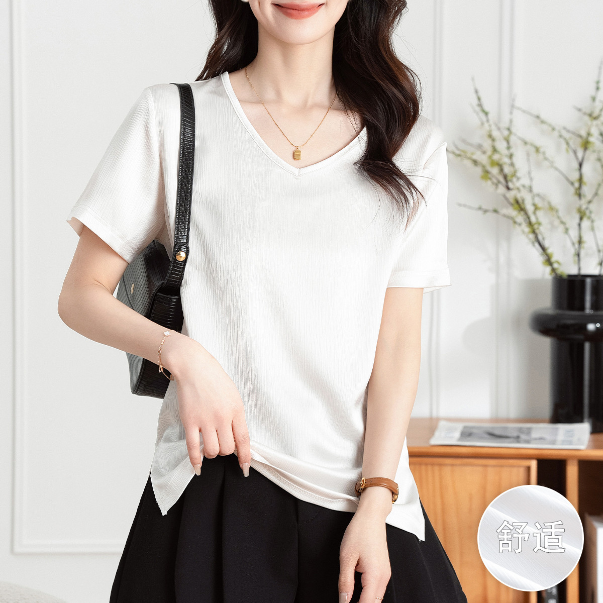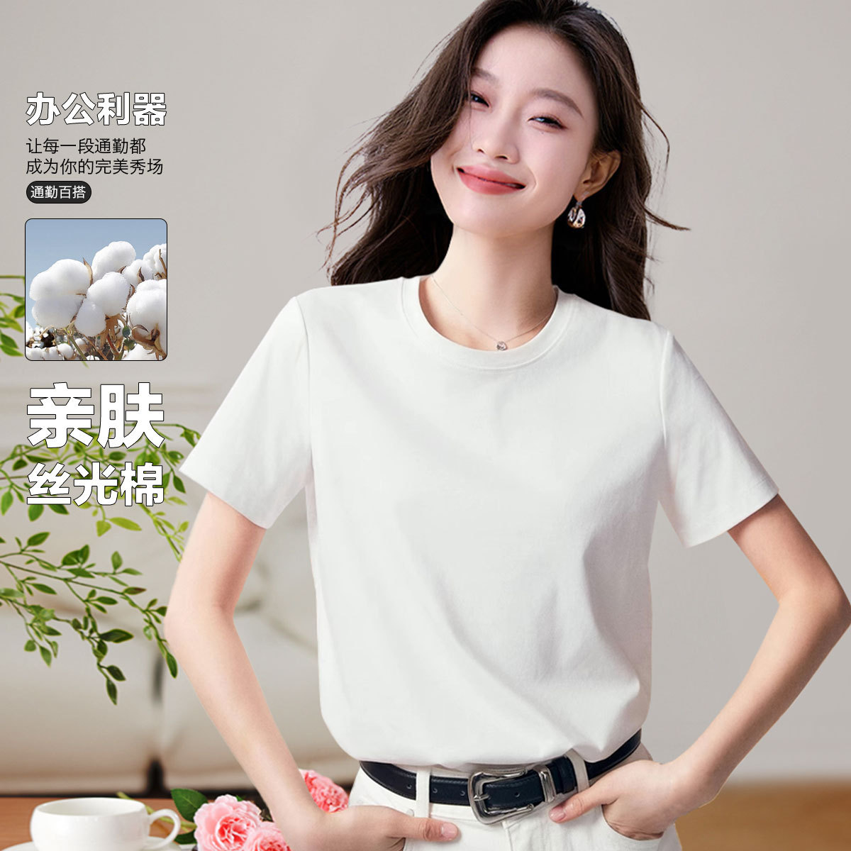 【丝光棉t恤】夏季基础款百搭简约休闲气质显瘦纯色短袖T恤女 659359