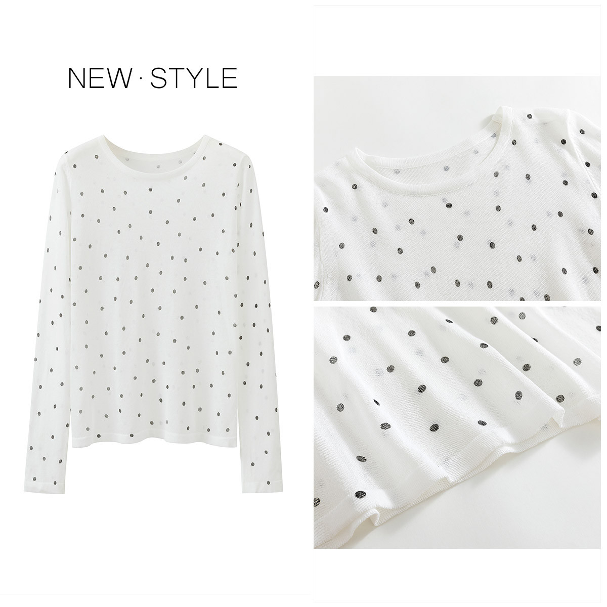 圆领长袖T恤软糯波点打底休闲显瘦百搭空调服罩衫上衣女 138563