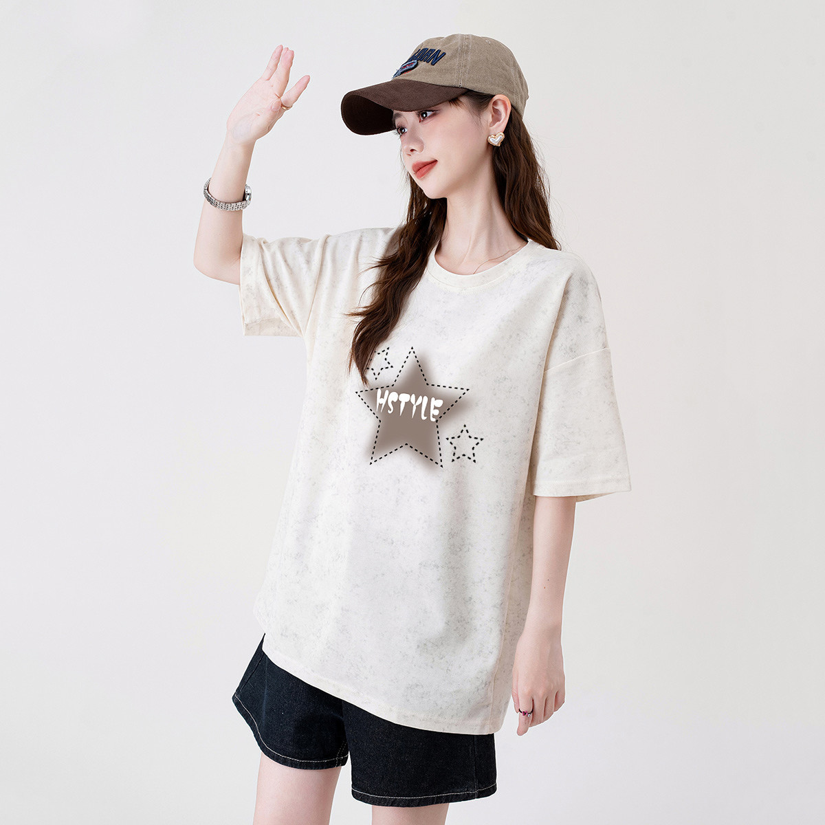 米子旗夏季圆领字母印花女式大码T恤宽松休闲慵懒风短袖上衣 516506