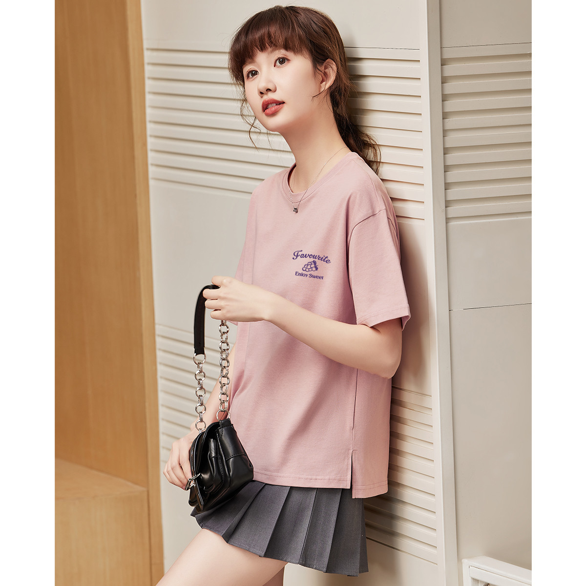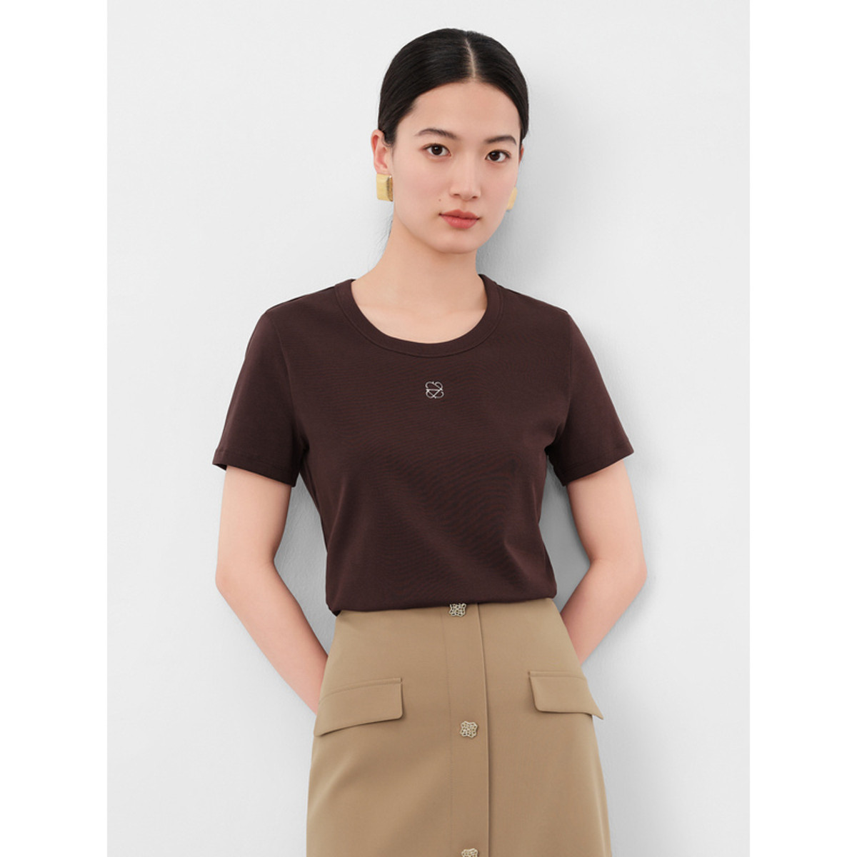 玖姿旗下安娜蔻系列基础款舒适棉柔刺绣上衣T恤女夏季 976652