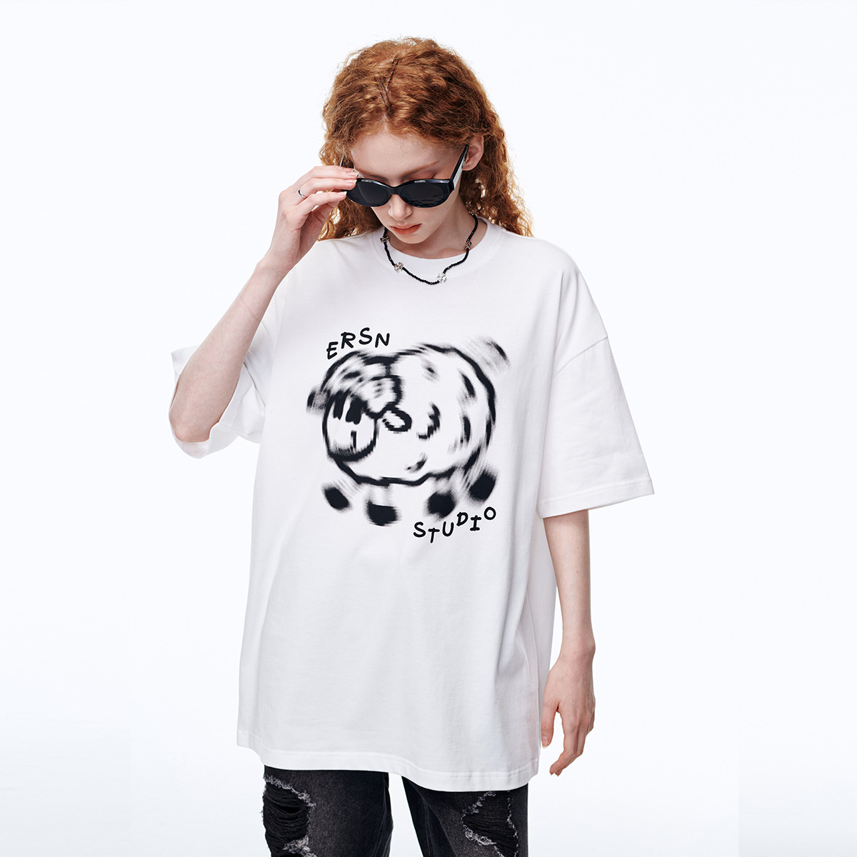 【100%棉】虚幻小羊短袖T恤美式情侣宽松休闲潮牌半袖体恤 408087