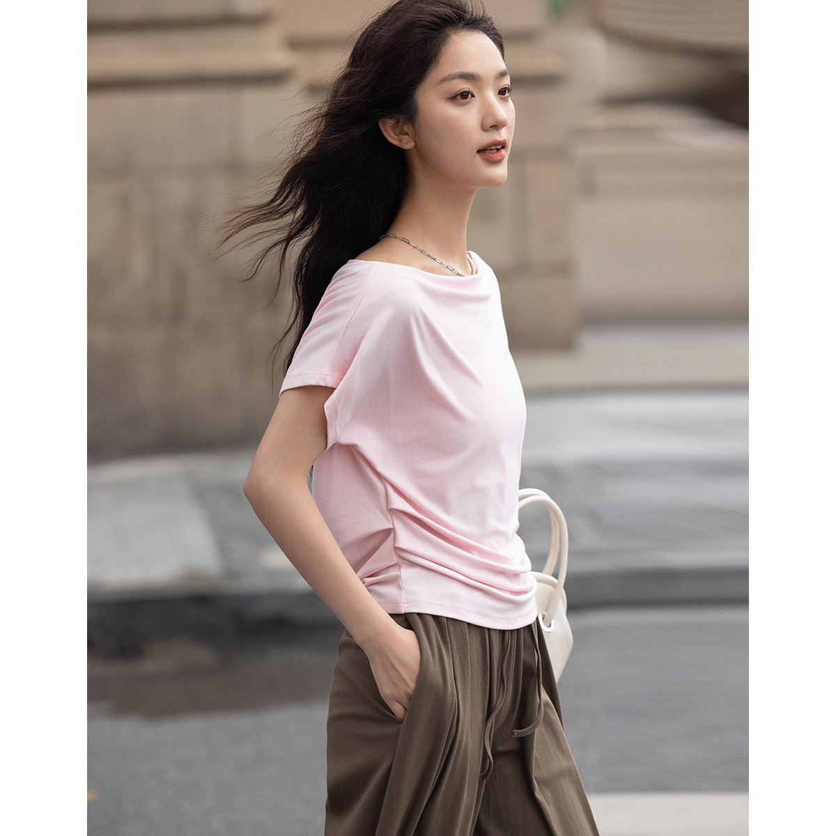 【简约一字领上衣】夏气质通勤亲肤舒适连袖T恤女 457602