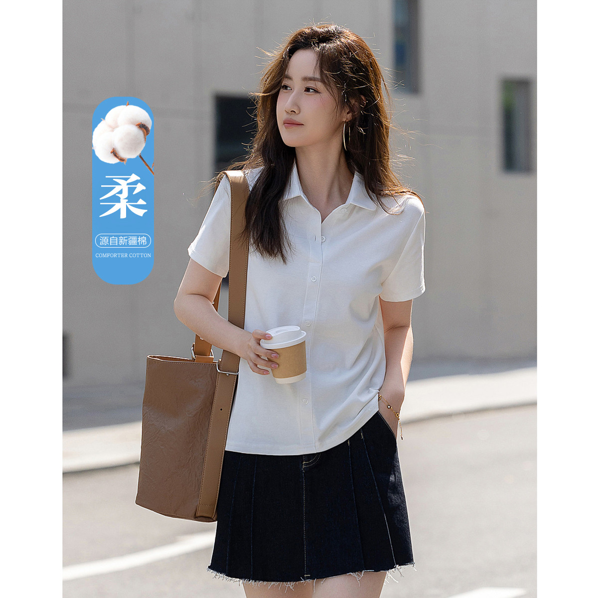 【格雷系穿搭】夏轻龄甜美娃娃领休闲短袖舒适棉氨女式t恤 660033