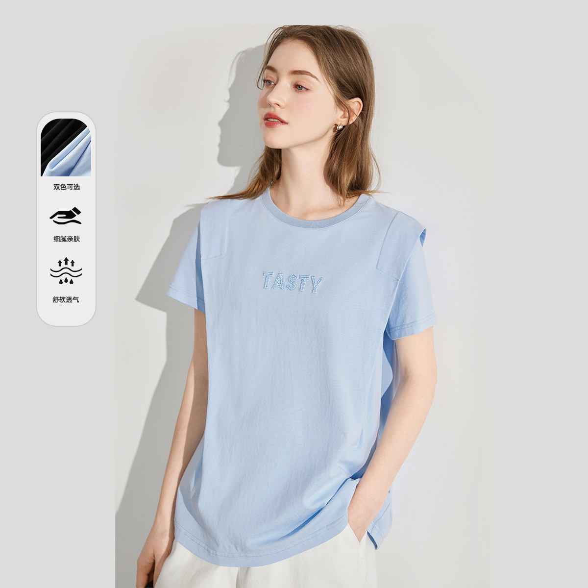 【棉质透气】夏季高街时髦百搭高级感宽松女式T恤简约短袖上衣 380957