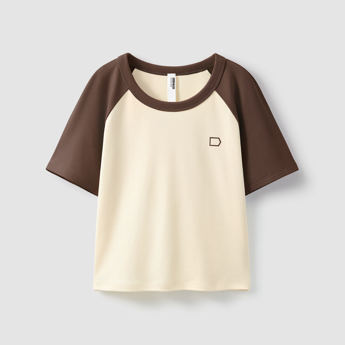 【甜酷风】301Go女士插肩撞色短款T恤莫代尔棉亲肤显腿长 469381