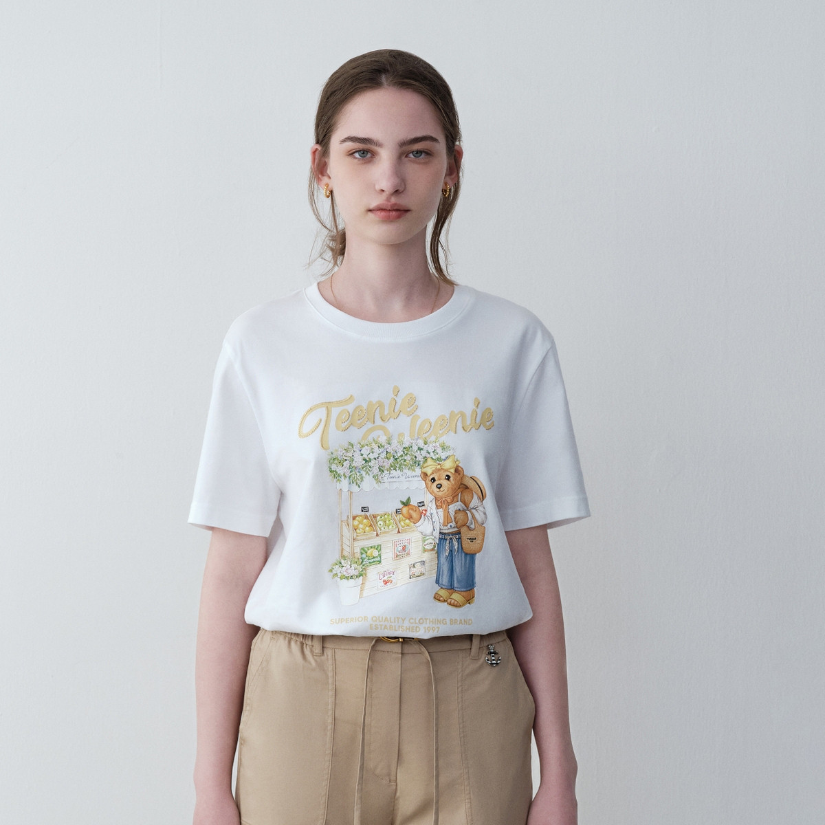 【大熊印花】短袖T恤女夏季简约时尚宽松圆领T恤上衣女 079169