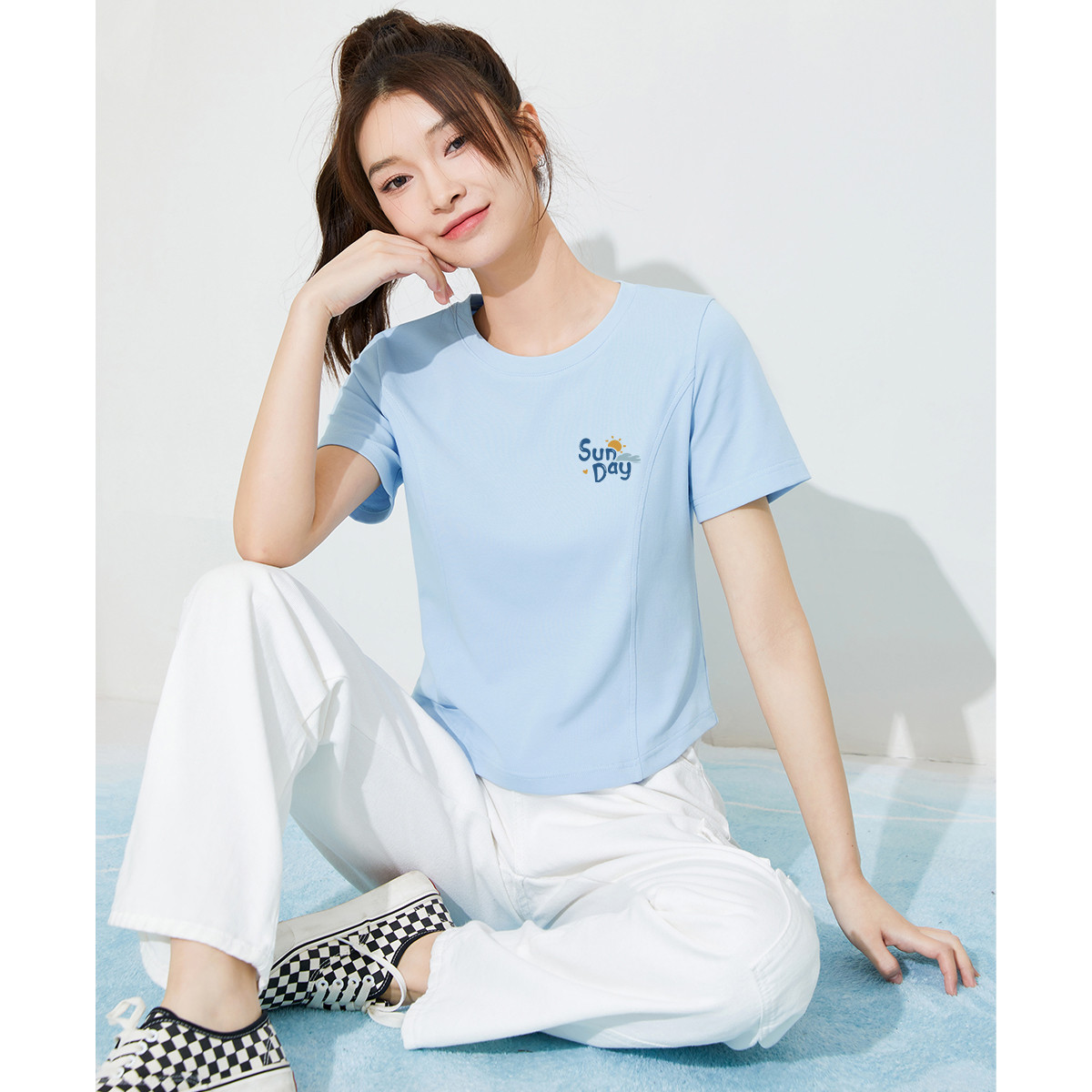 米子旗夏季女字母印花圆领T恤弧形下摆显瘦舒适短袖上衣 394522