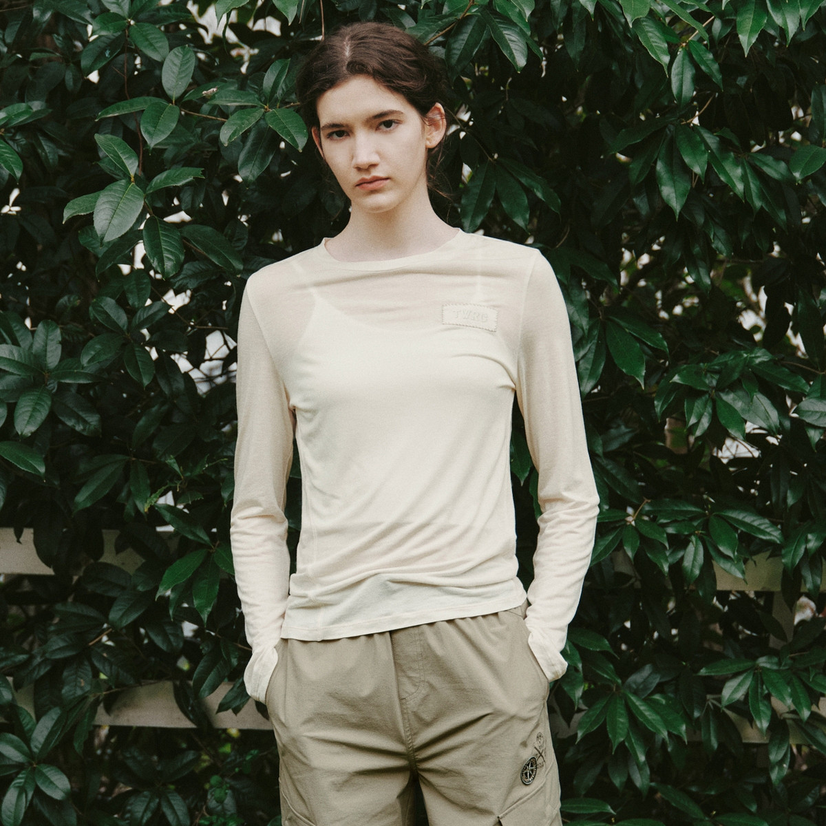 长袖T恤女春夏轻薄天丝绵羊毛混纺圆领刺绣打底衫女 593665