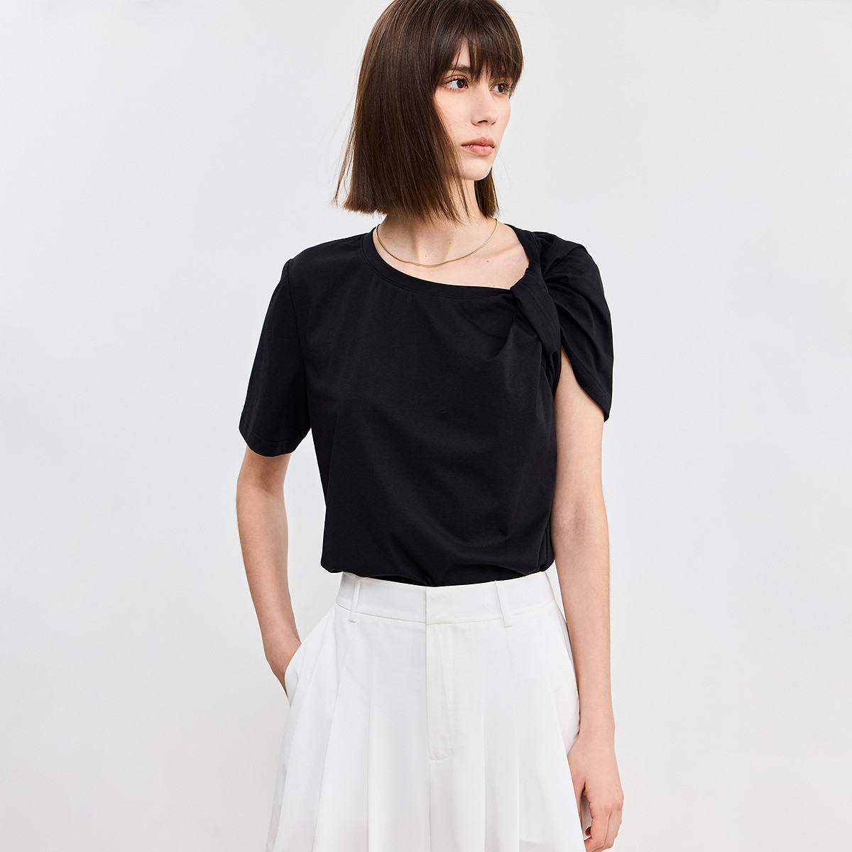 合体舒适修身显瘦不对称造型感设计短袖T恤 395995