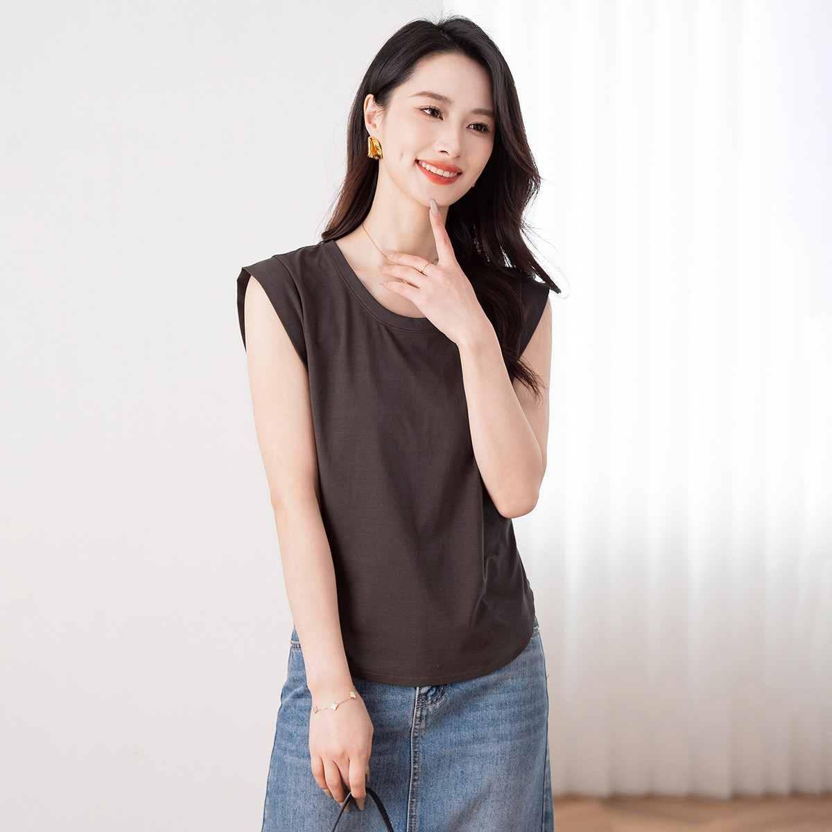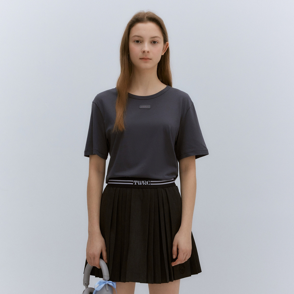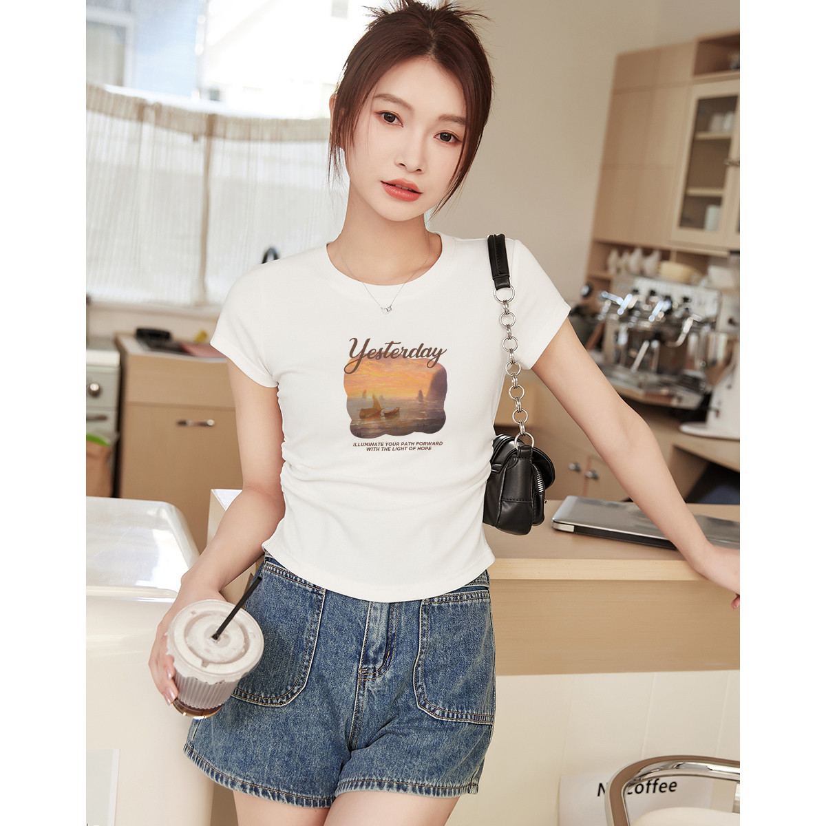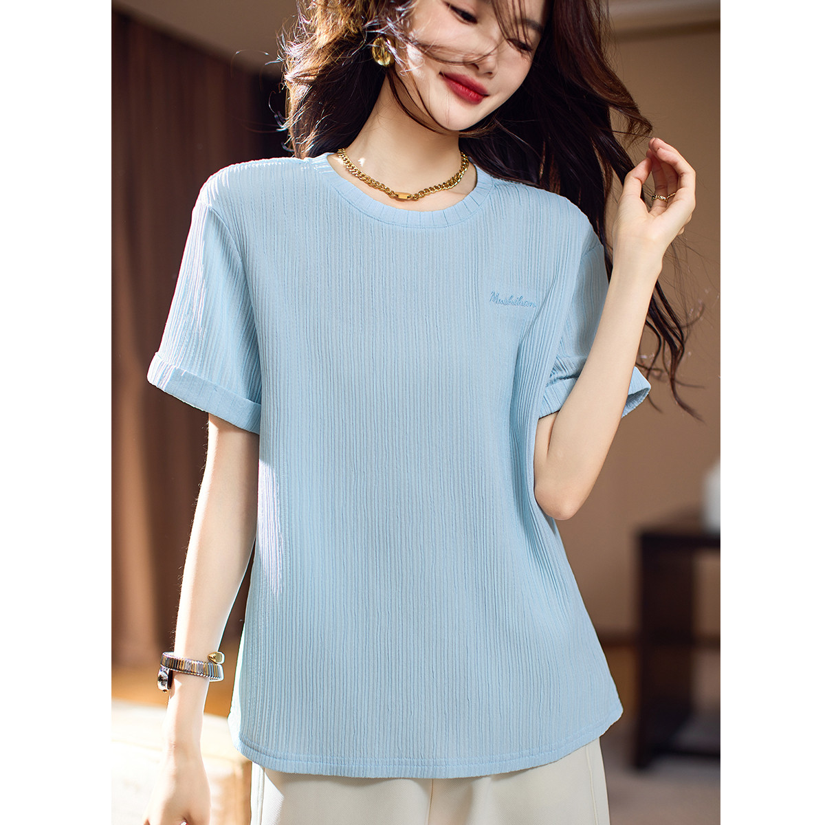 米子旗夏款圆领女士T恤休闲百搭收腰修身短款正肩短袖女 137050