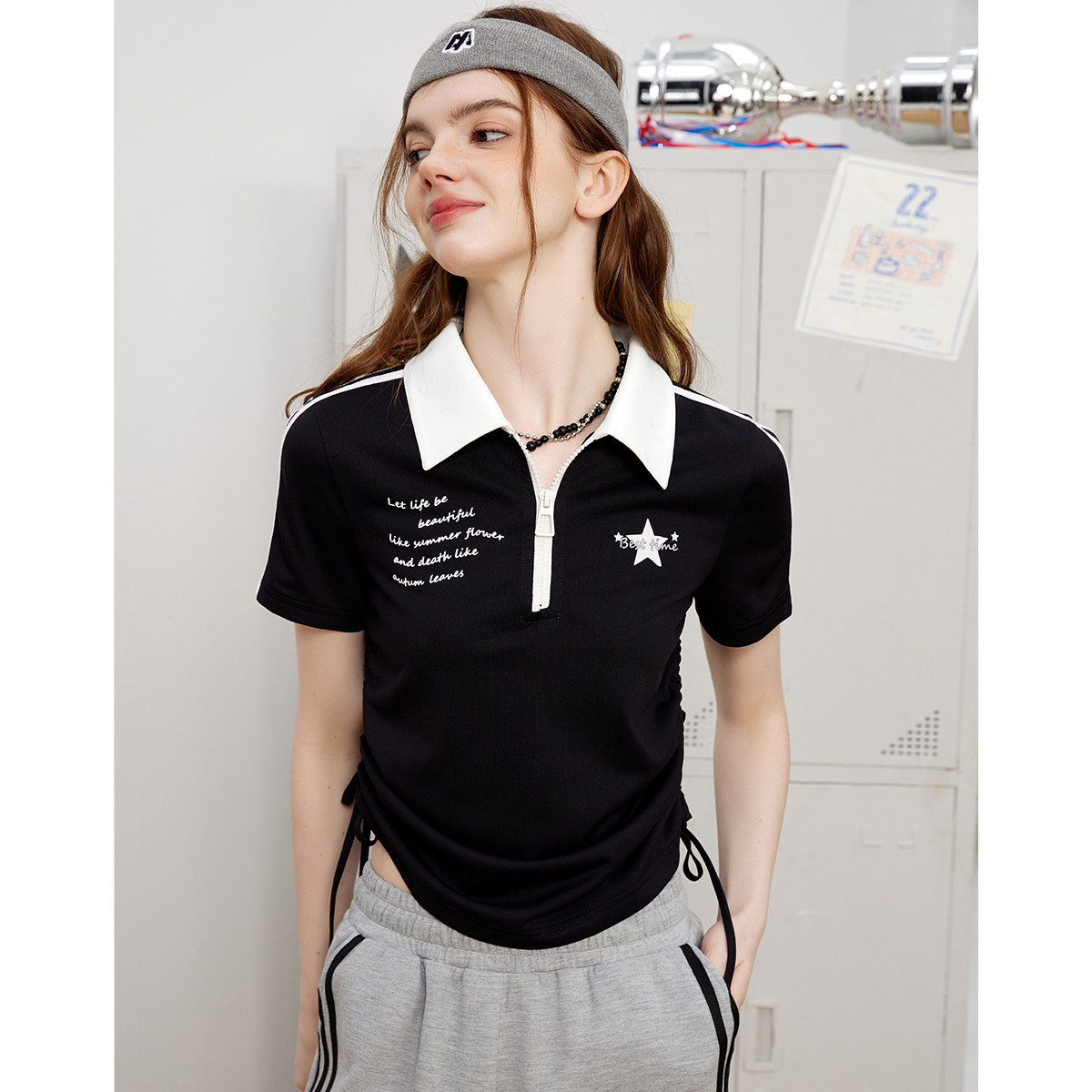 侧边抽绳设计感修身短款女式Polo衫夏季休闲短袖上衣 838109