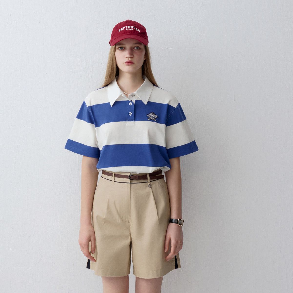 小熊女装时尚宽条纹POLO衫学院风短袖T恤 716609