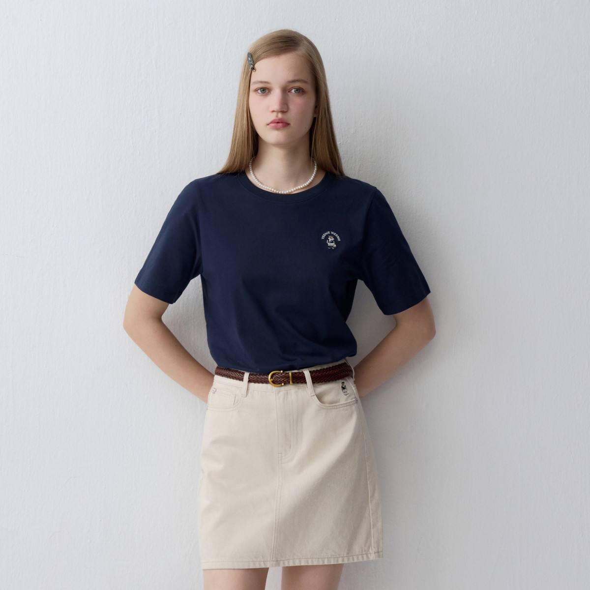 短袖T恤女夏季简约休闲小熊刺绣圆领T恤上衣女 195457