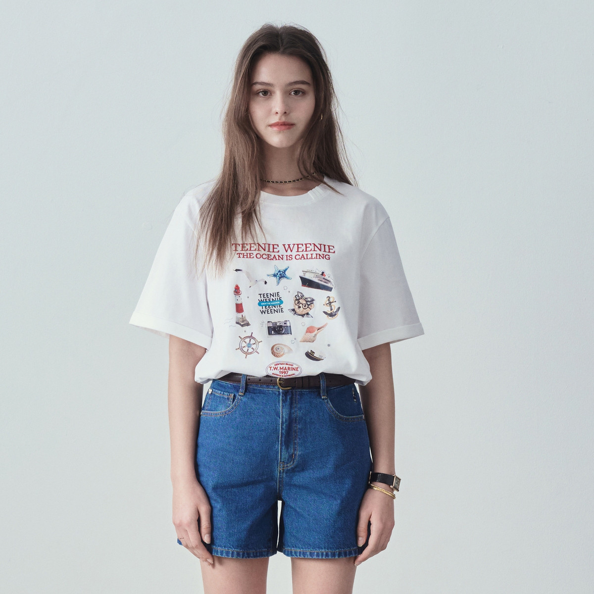 小熊夏季款海军风圆领T恤白色时尚韩系上衣女士 376961