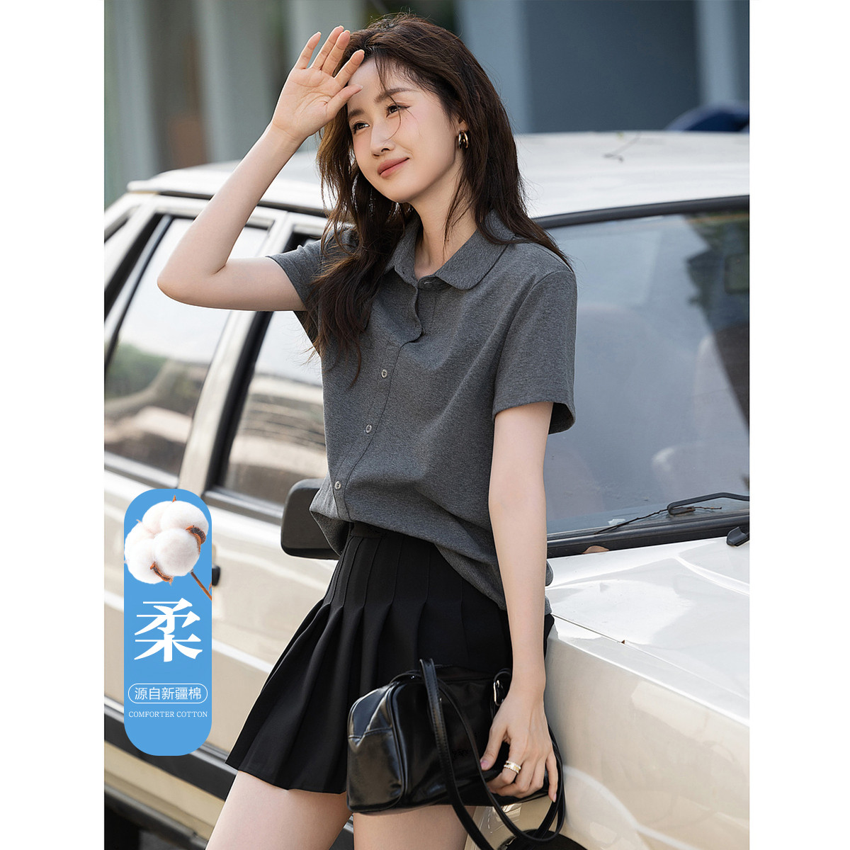 【格雷系穿搭】夏轻龄甜美娃娃领休闲短袖舒适棉氨女式t恤 643649