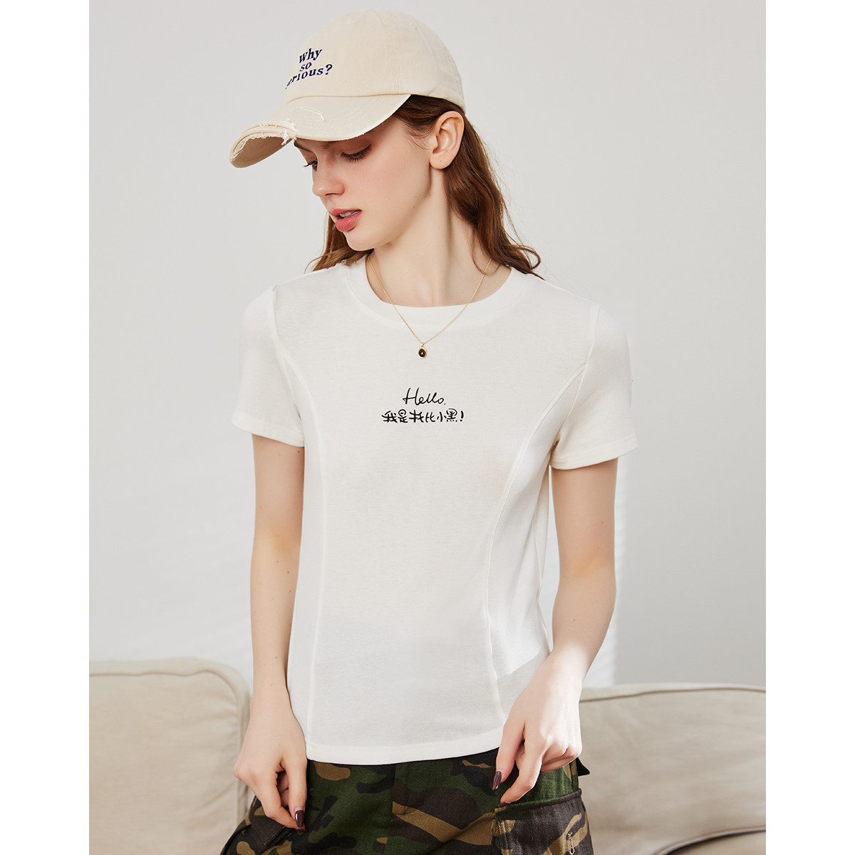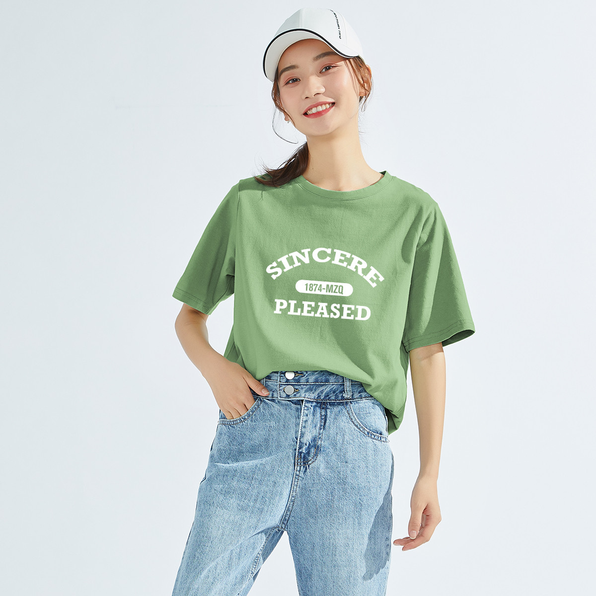 米子旗夏季圆领创意印花女式T恤简约宽松休闲短袖上衣百搭 754906