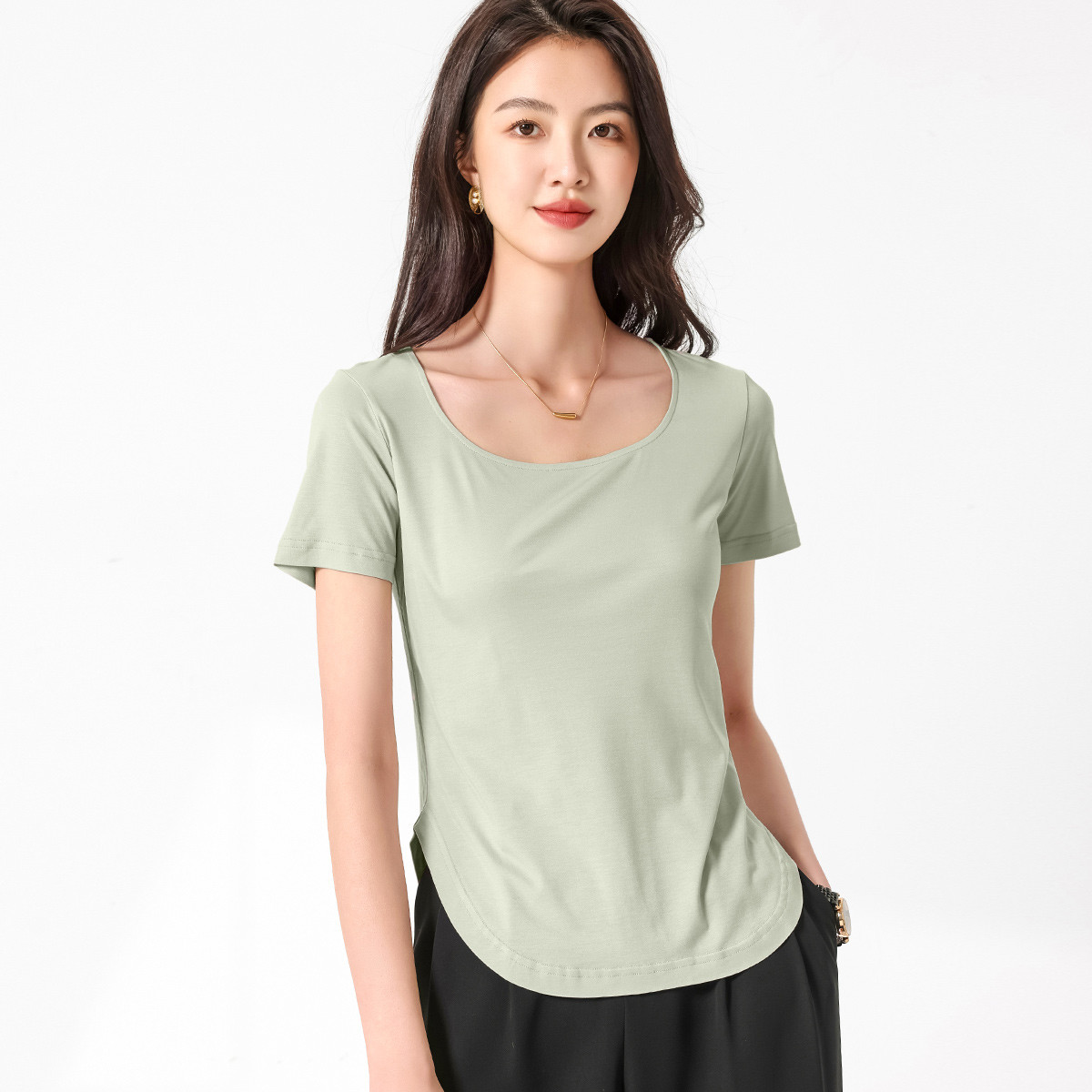 【含桑蚕丝】简约百搭纯色大U领短袖丝光T恤 465491