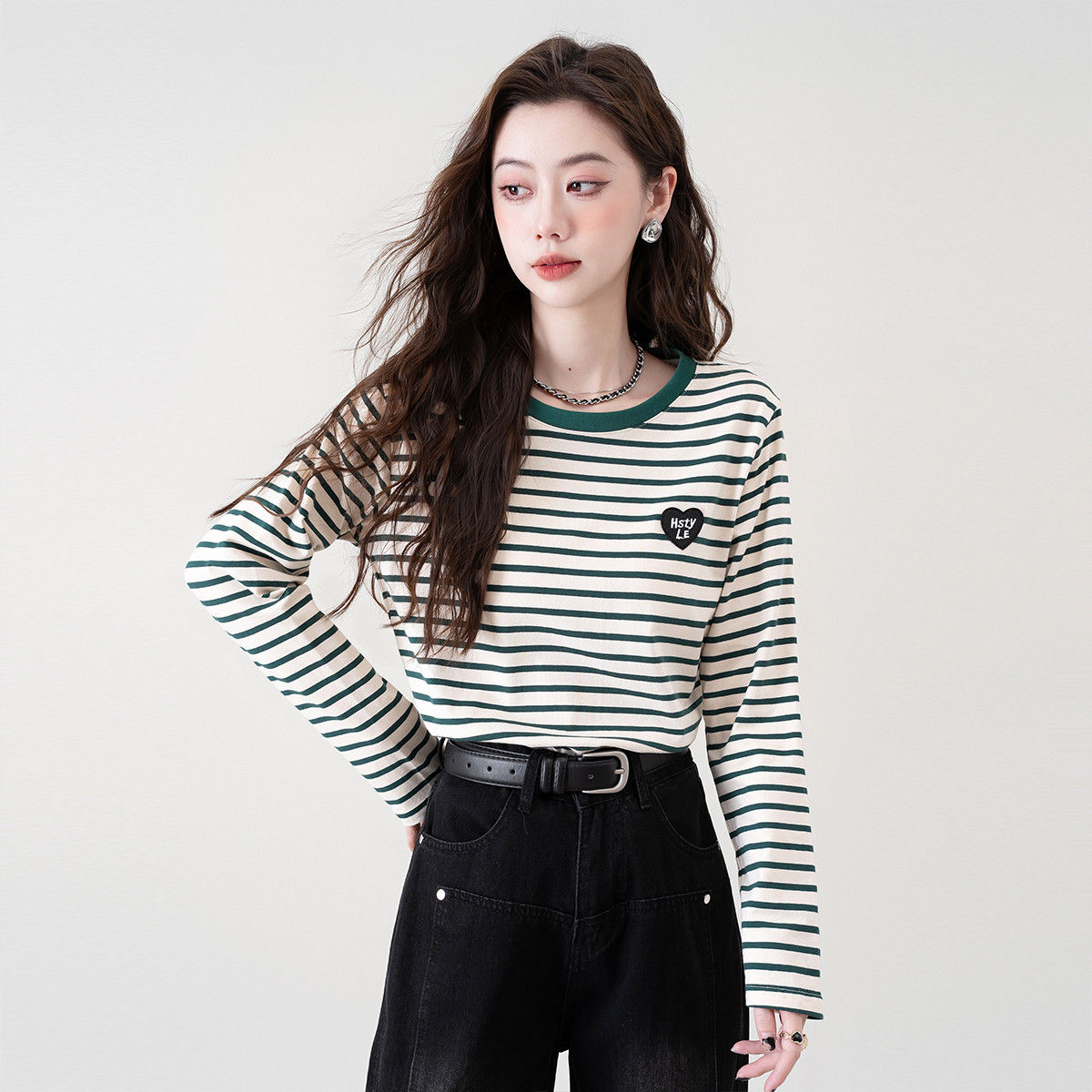 春季款韩系长袖上衣女圆领条纹打底针织内搭女式t恤 201419