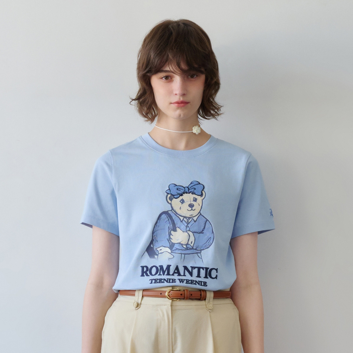 短袖T恤女夏季简约手绘风大熊图案刺绣圆领T恤打底衫女 262081
