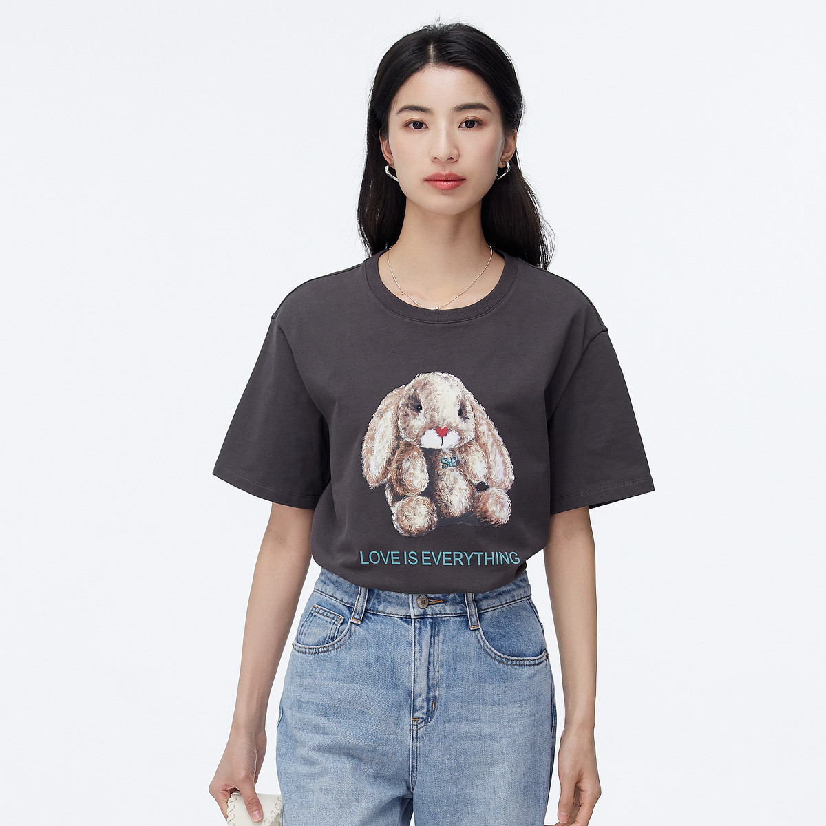 时尚卡通兔子印花短袖T恤女夏季宽松上衣显瘦纯棉T恤女 821123