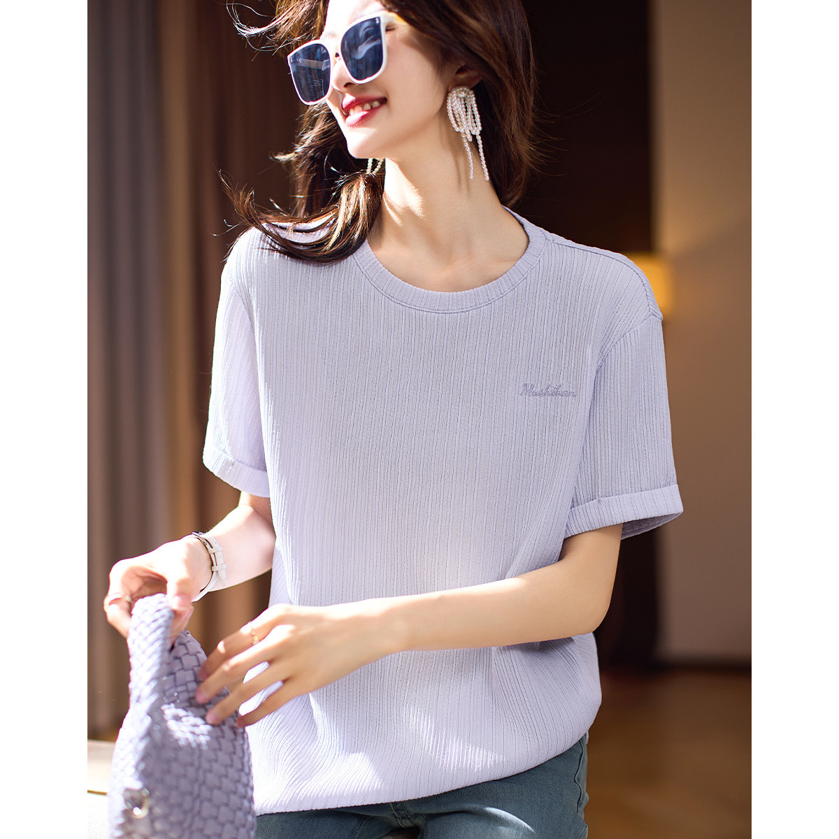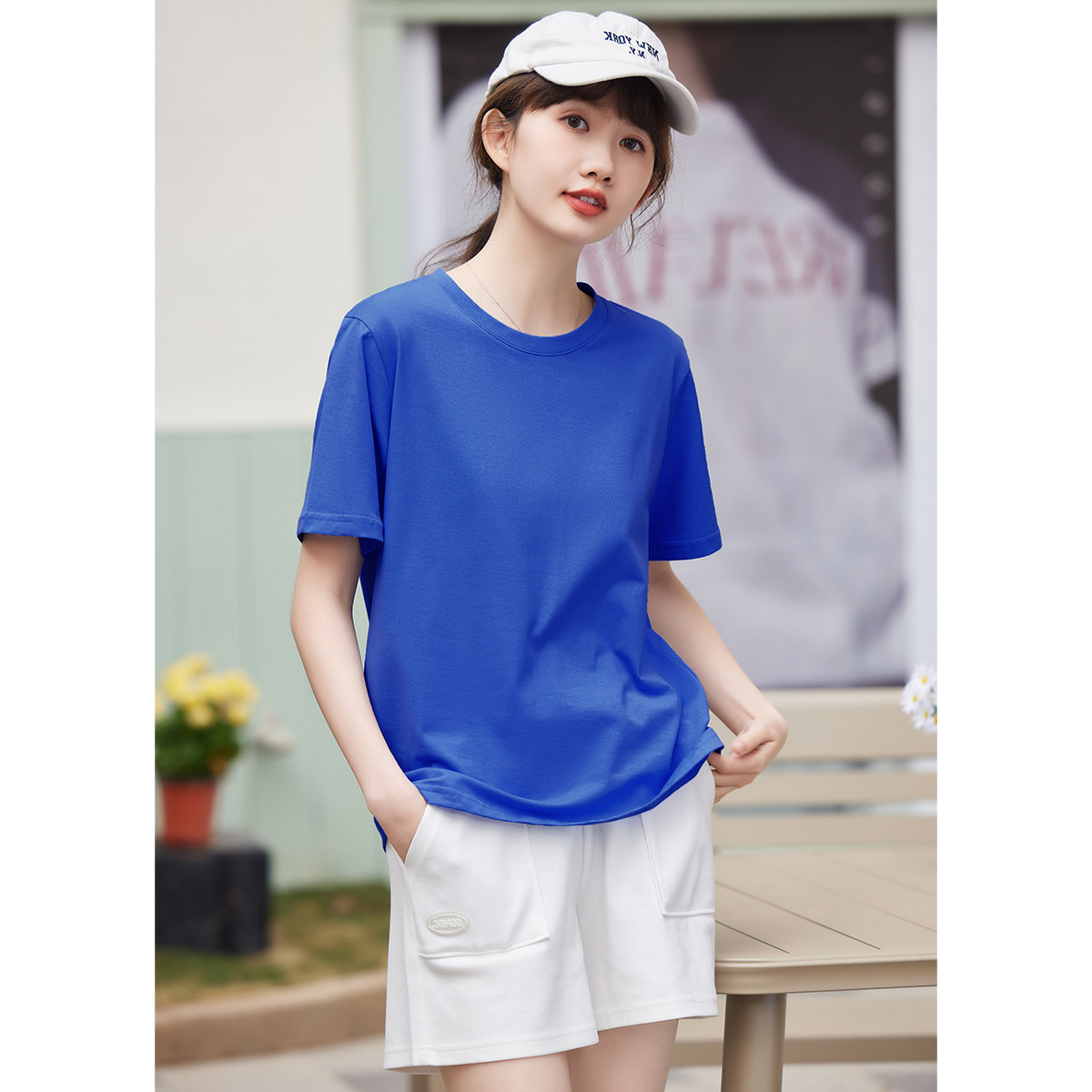 米子旗夏季圆领简约纯色女式T恤宽松休闲显瘦短袖上衣 189338