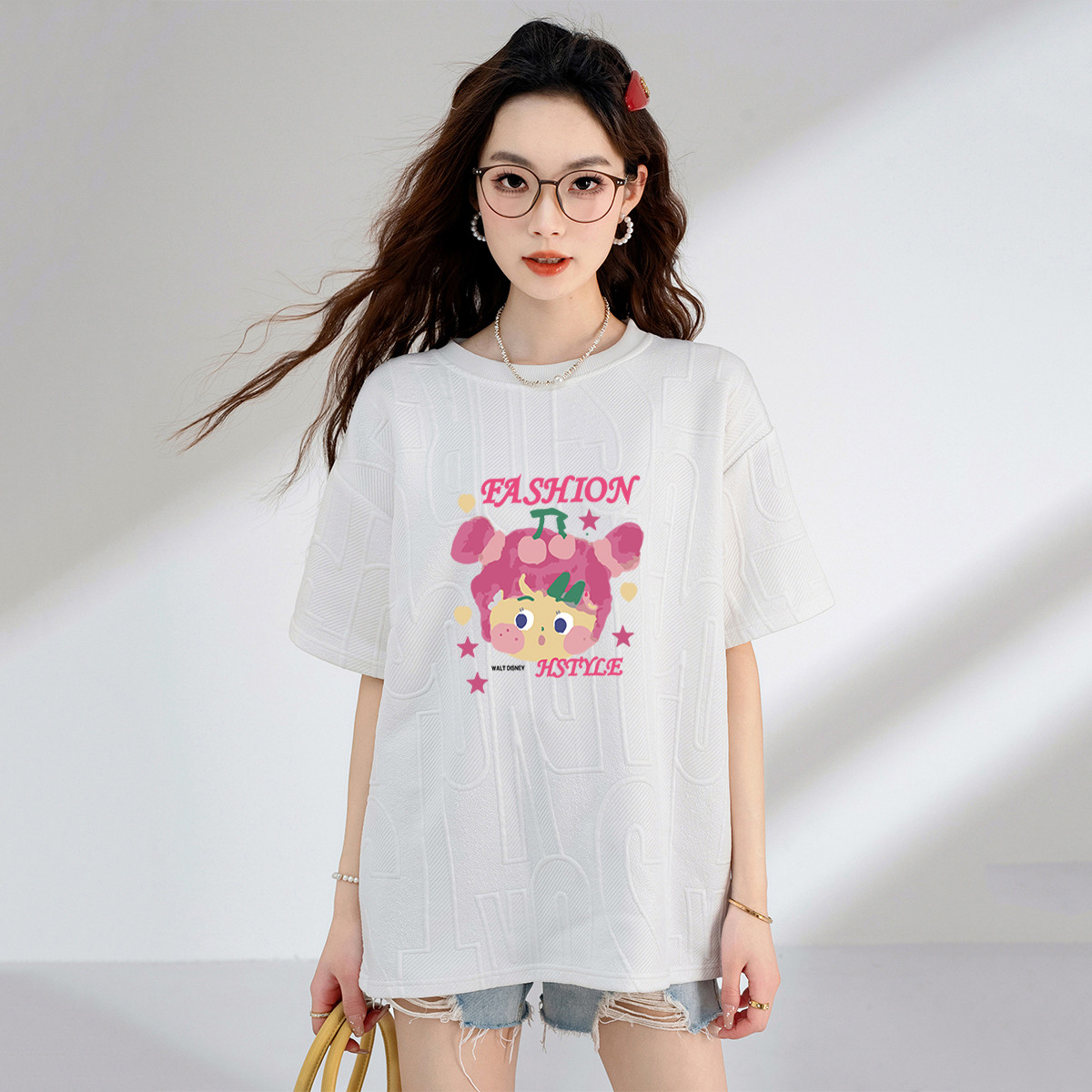 【100%棉】卡通字母短袖夏季休闲国潮牌美式宽松圆领T恤男女同款 219735