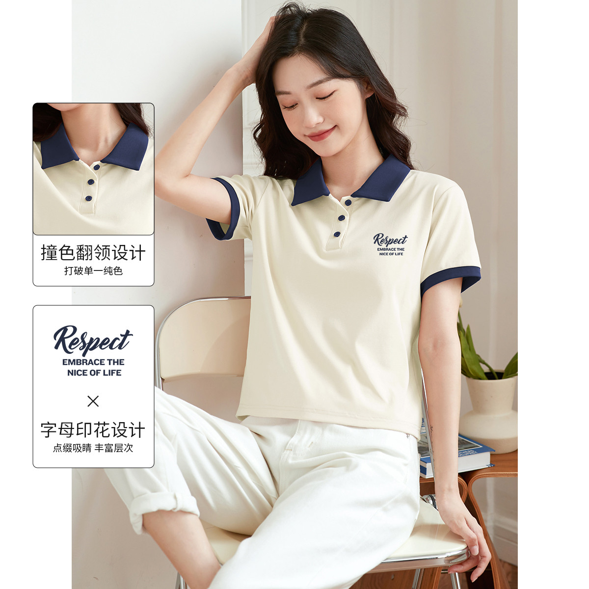 米子旗夏季女polo领印花T恤撞色拼接设计百搭短袖上衣 542106