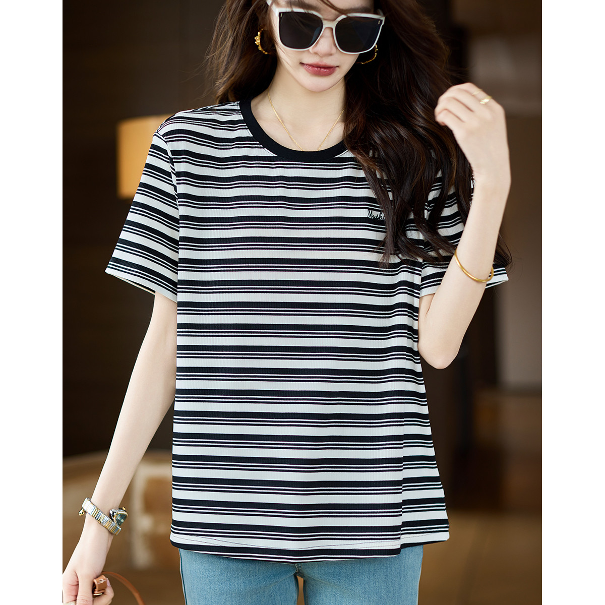 经典条纹短袖T恤2025夏季新款休闲百搭上衣轻薄宽松舒适T恤 274633