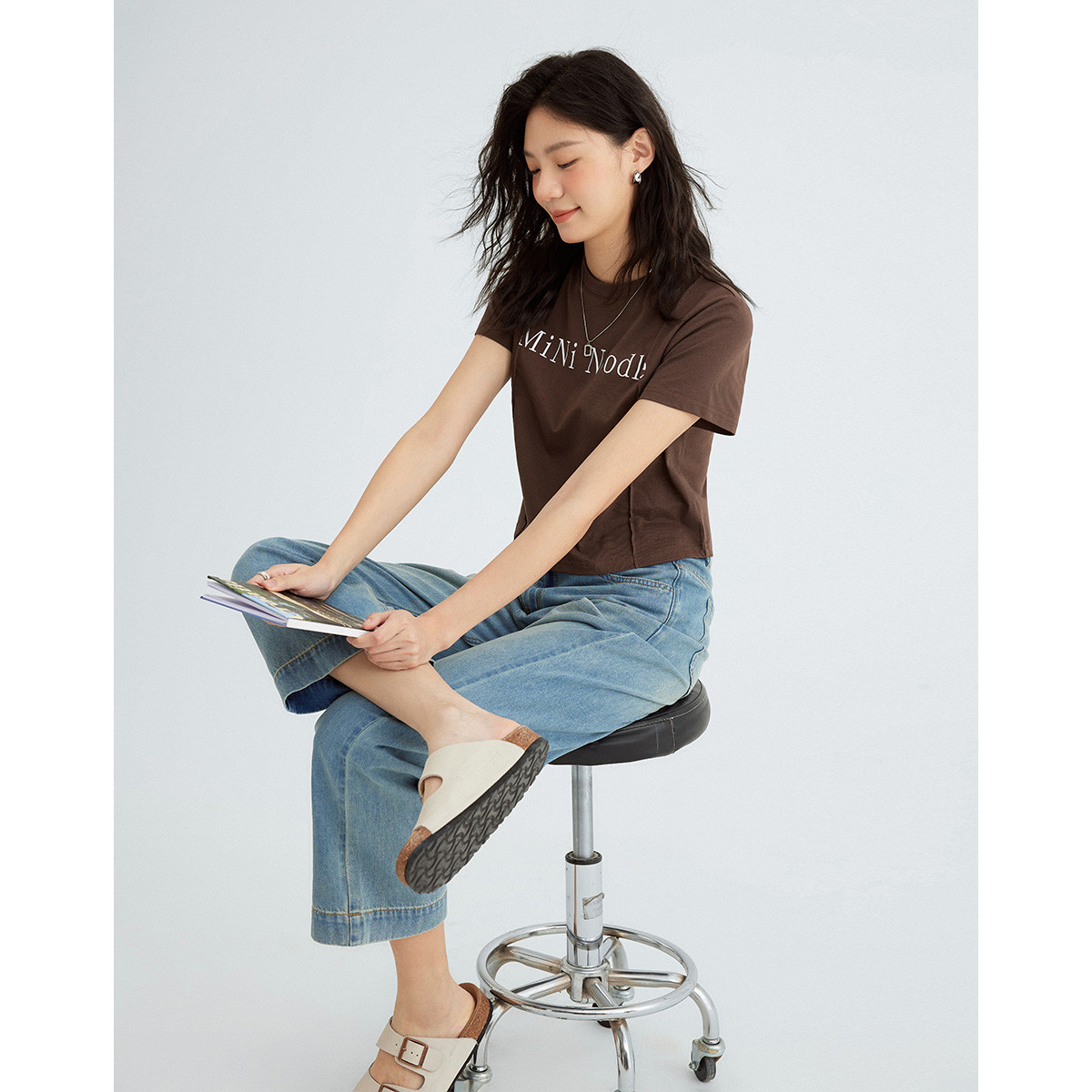 米子旗夏季圆领创意印花T恤女休闲简约修身版短袖上衣 744986