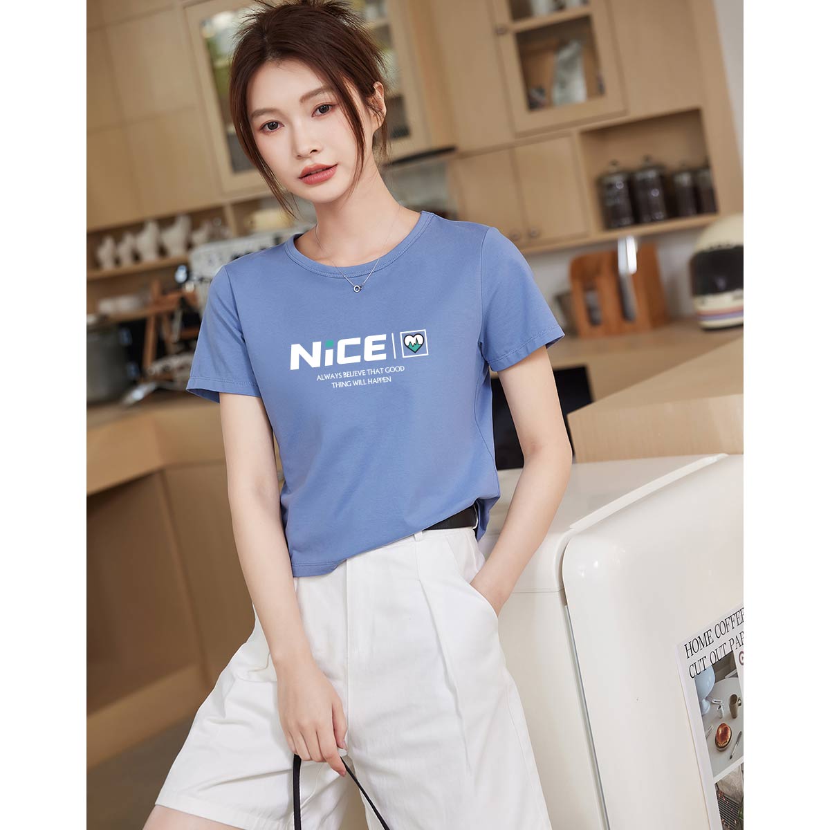 夏季款设计感女式t恤印花上衣女短袖简约内搭打底衫女 139083