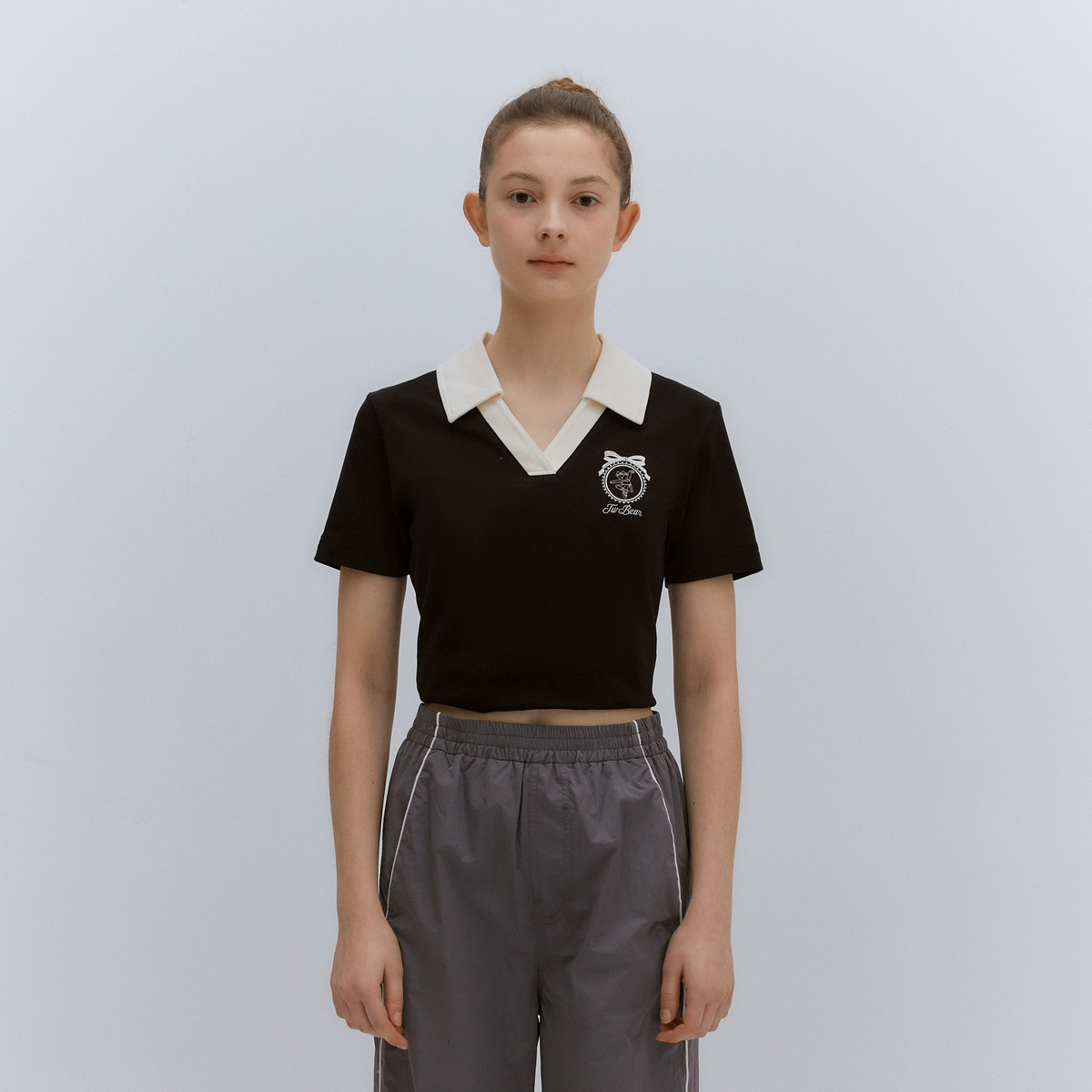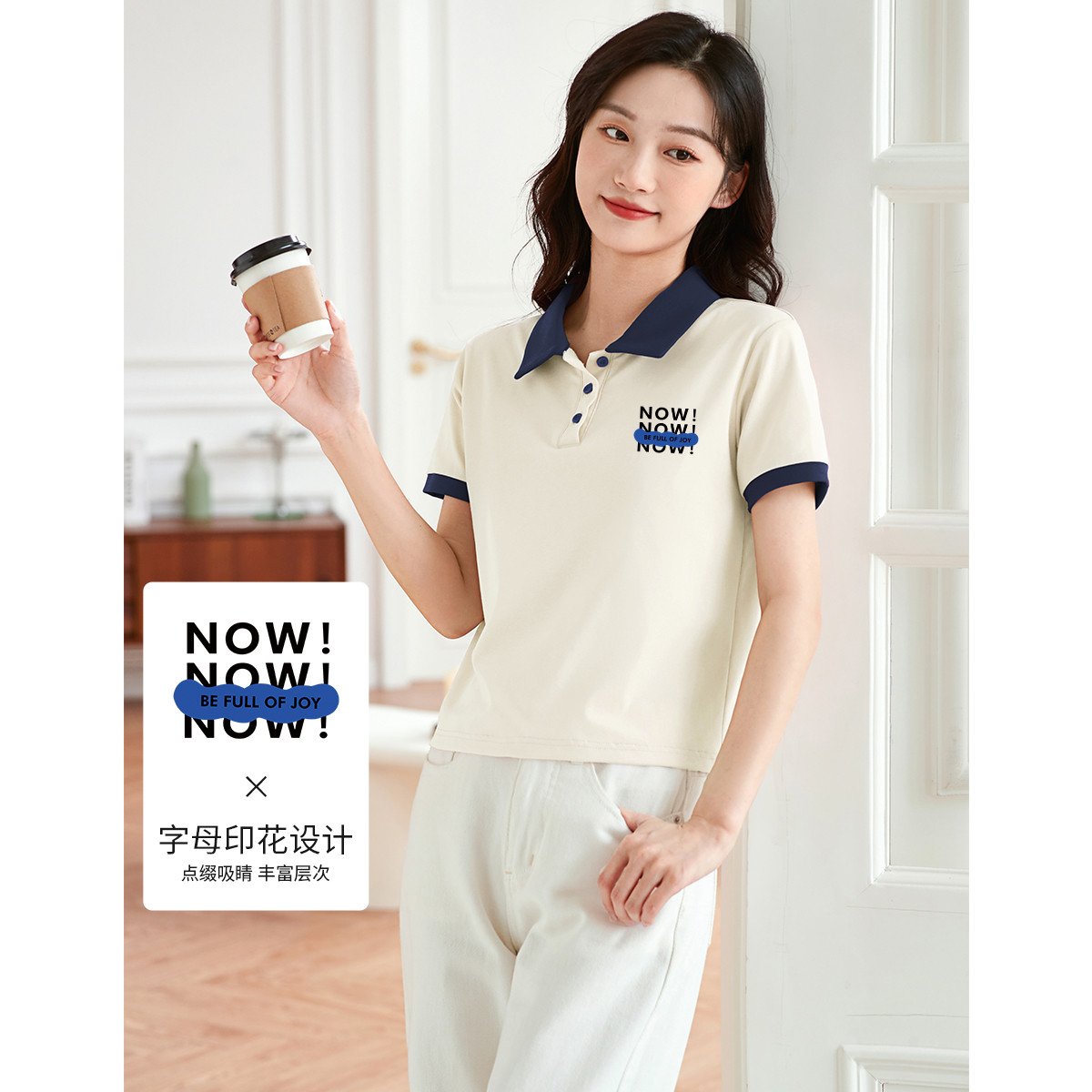 米子旗夏季女polo领印花T恤撞色拼接设计百搭短袖上衣 578970