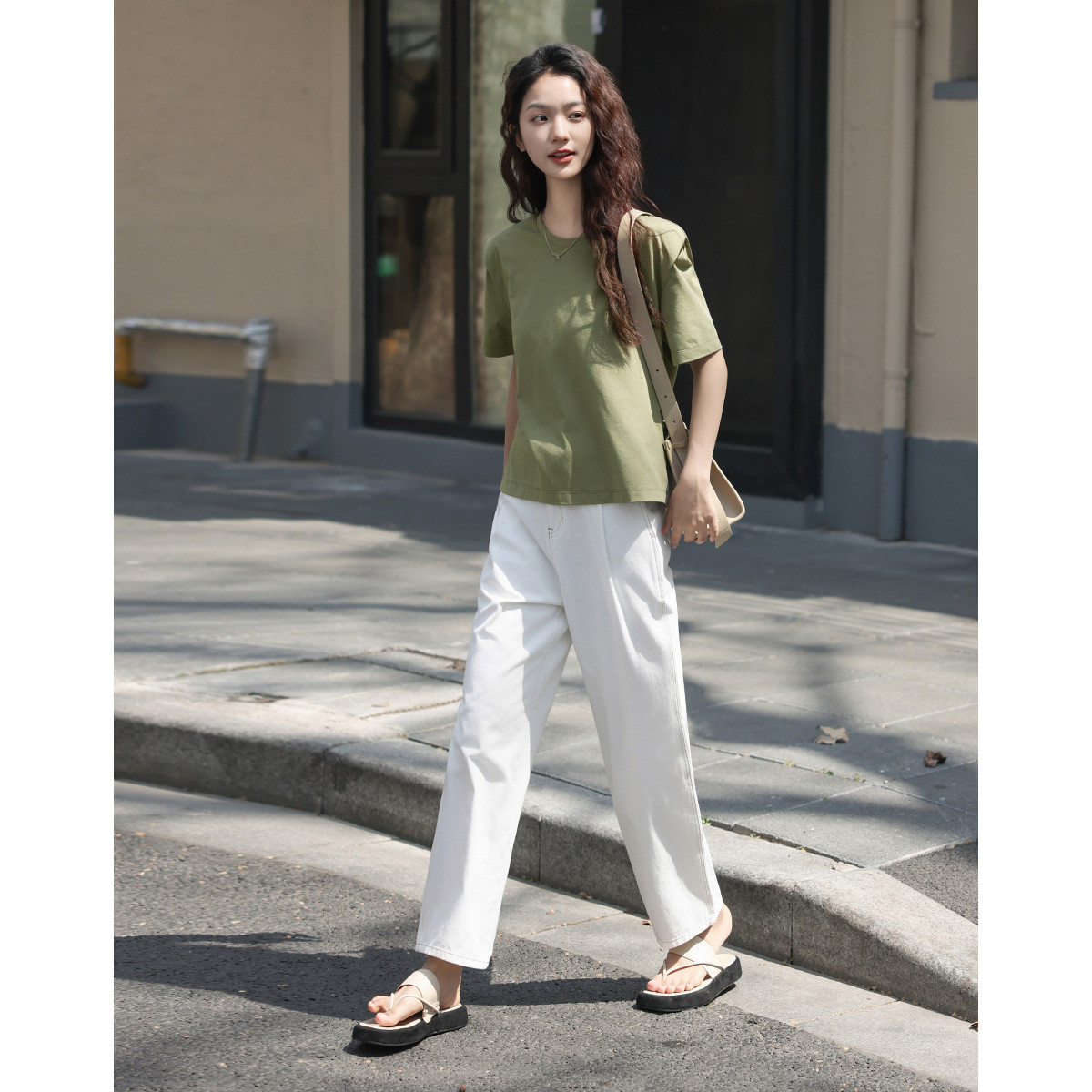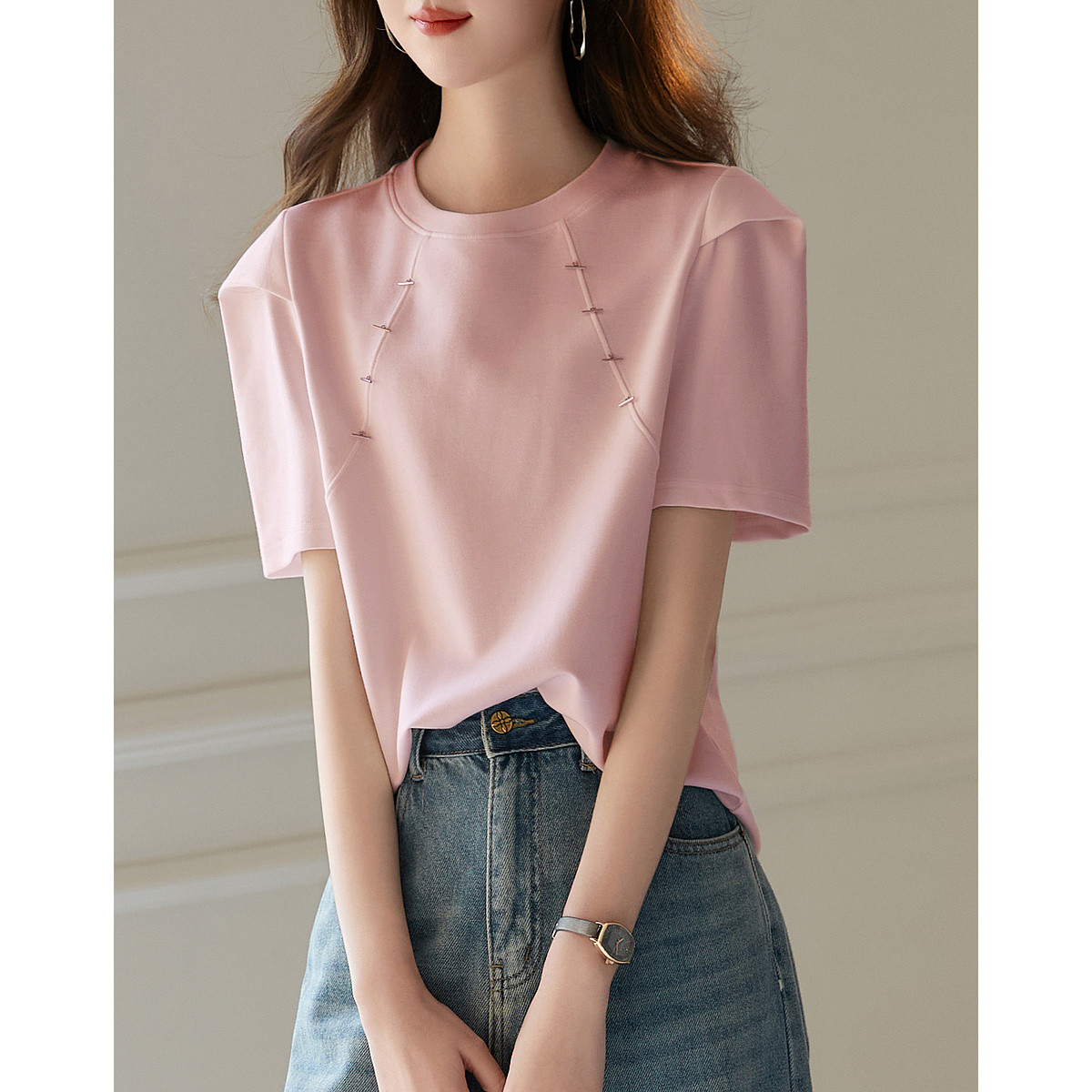 【基础纯色短T】夏简约款洋气设计感垫肩休闲通勤短袖女 163714