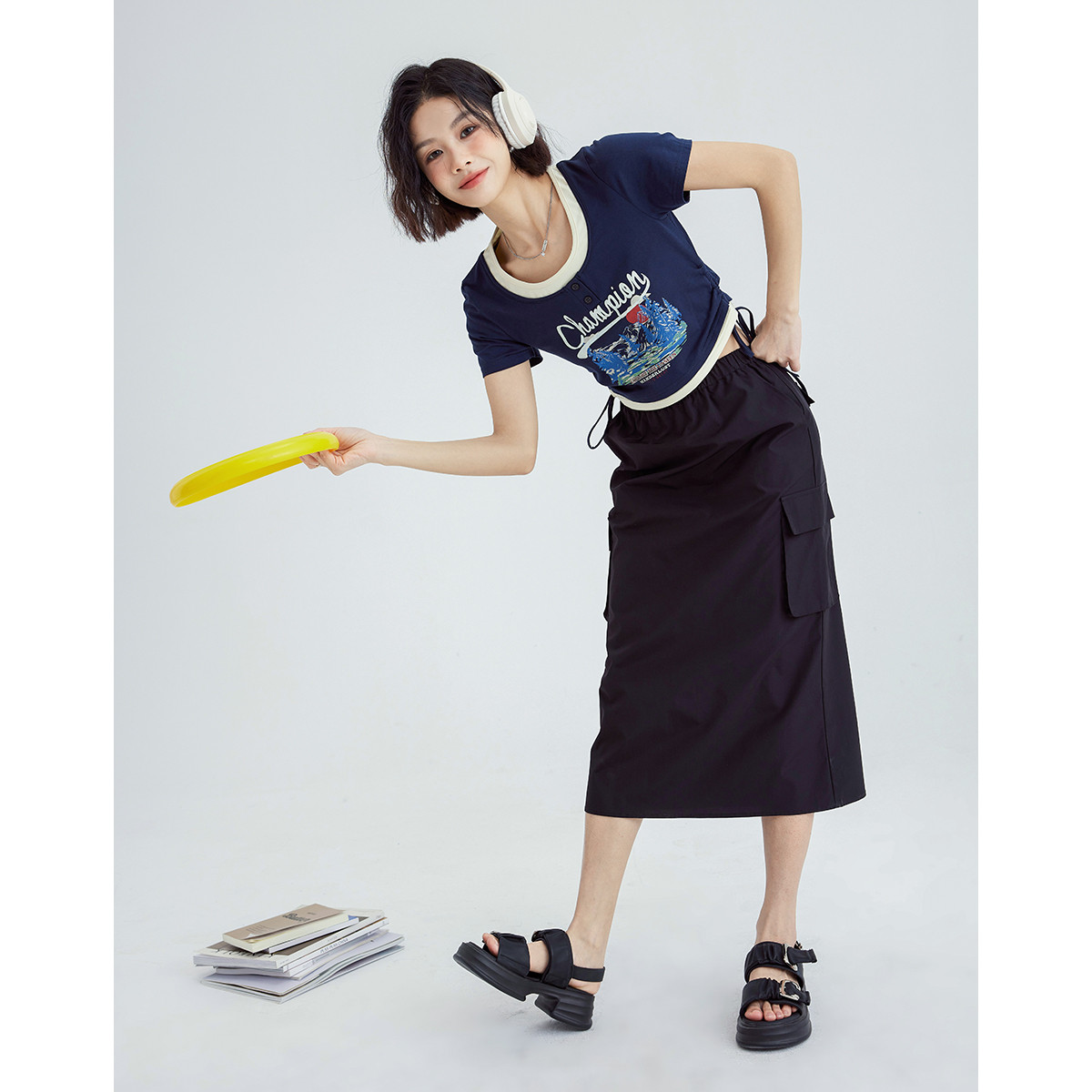 小熊夏季简约撞色圆领学院微宽松短袖T恤时髦休闲女 487105