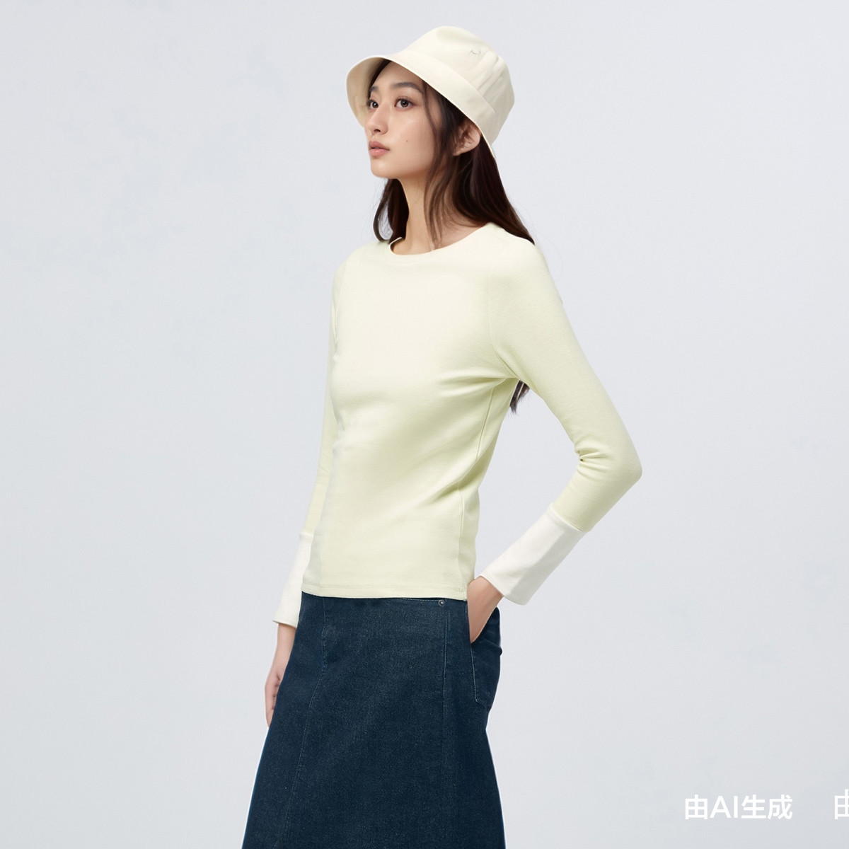 Gap女装夏季洋气撞色圆领长袖T恤高级简约时尚气质休闲上衣836105 362714