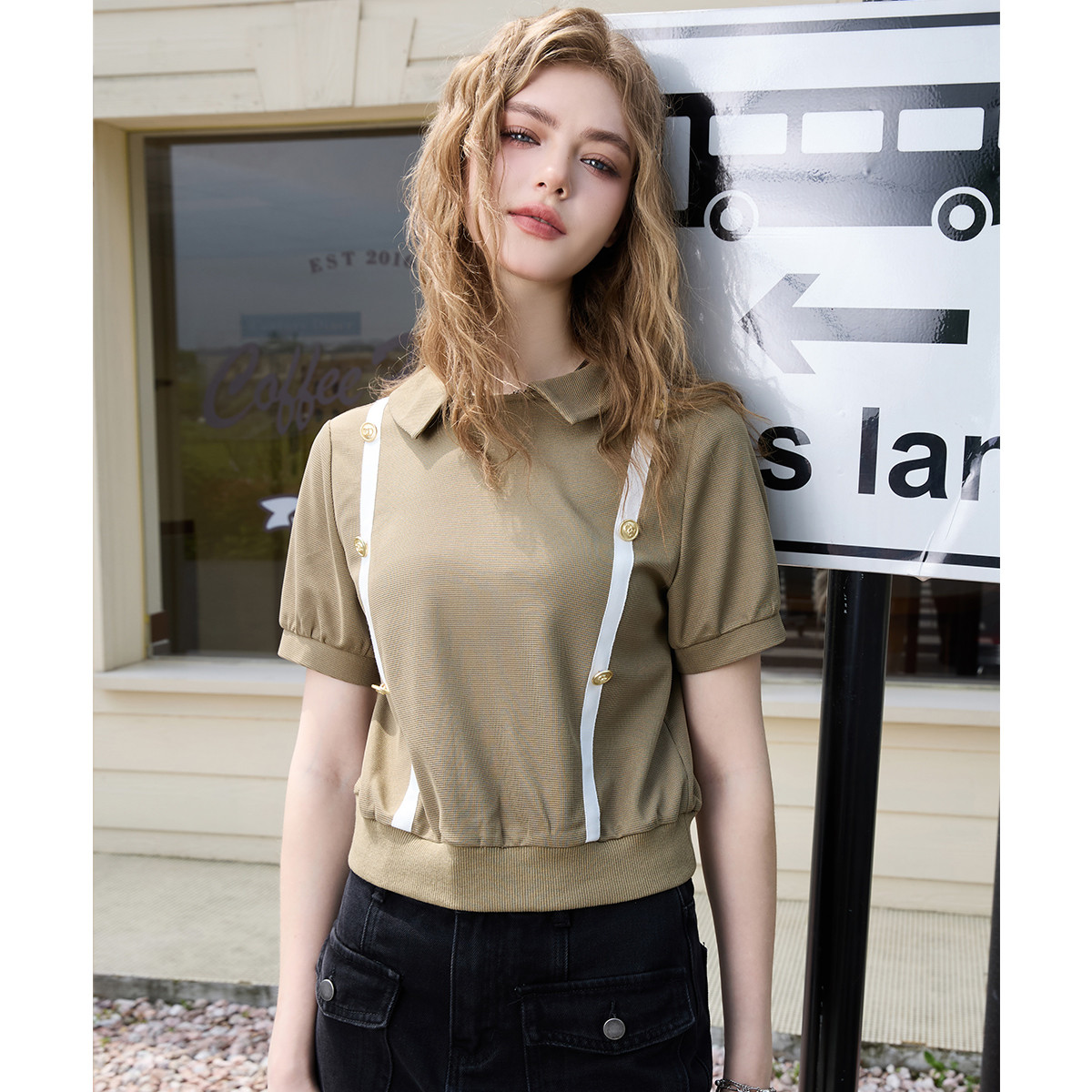 【格雷系穿搭】夏轻龄甜美娃娃领休闲短袖舒适棉氨女式t恤 651841