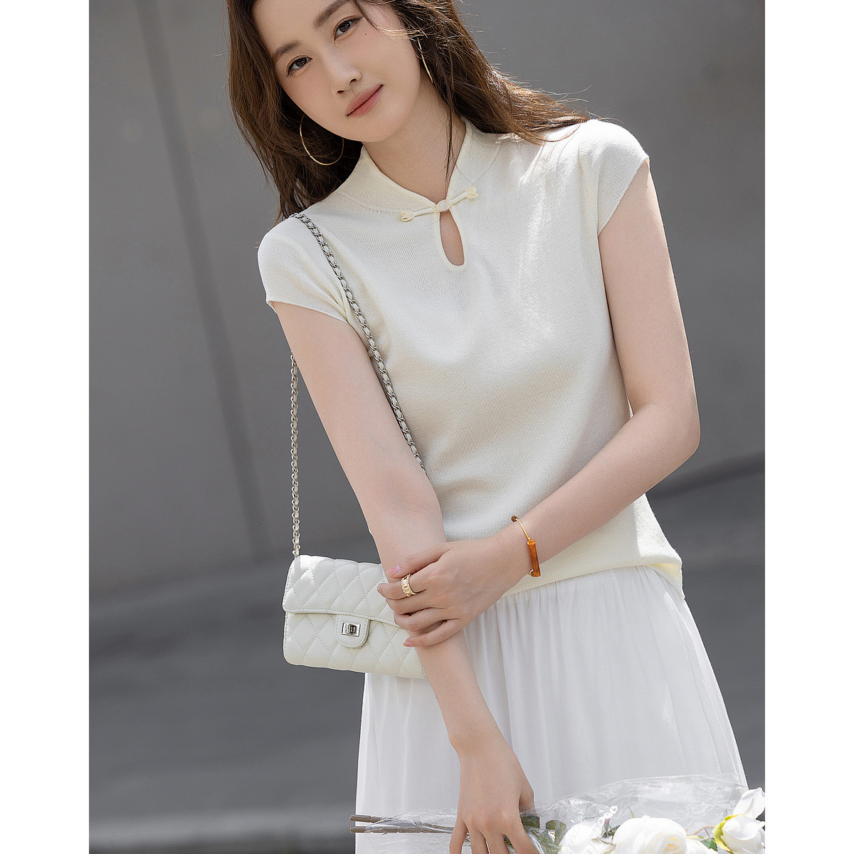 【新中式线衫】夏东方国韵立领盘扣修身短袖弹力显瘦针织衫 029441