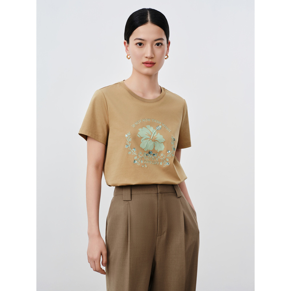 玖姿旗下安娜蔻系列简约亮片刺绣短袖T恤女 519116