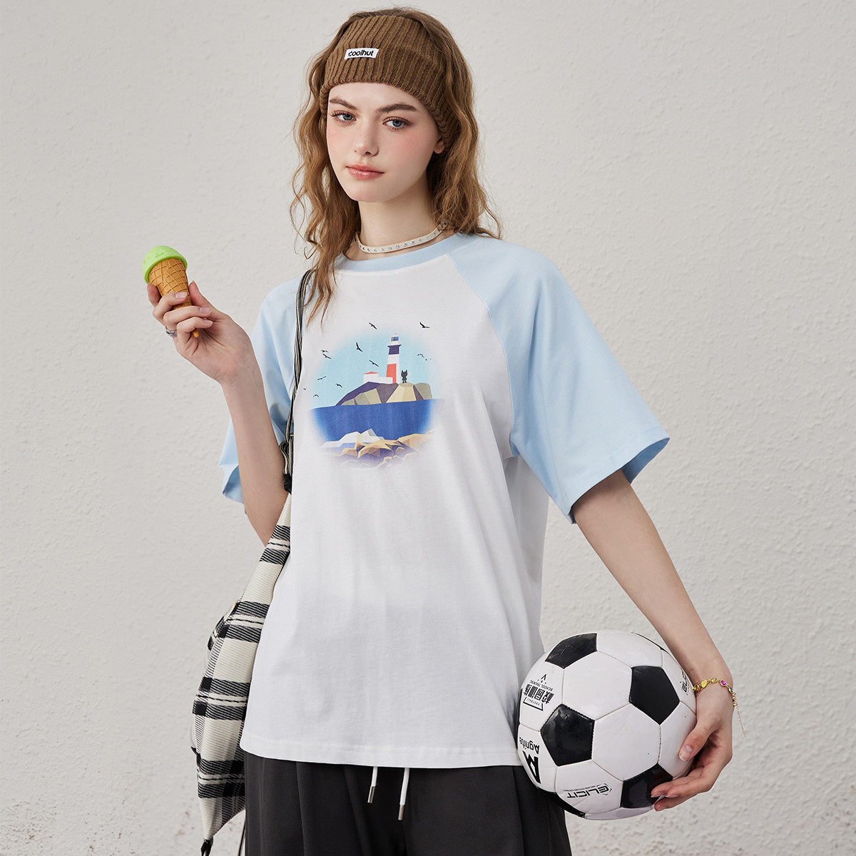 小熊女装夏季撞色短袖T恤棉质宽松中性风 019329